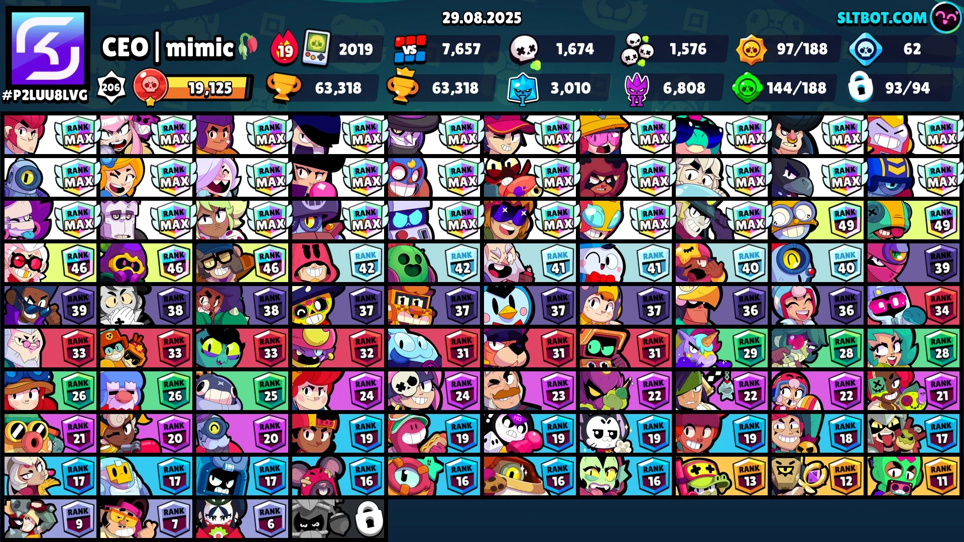 16 TITLES ⭐ 250 SKINS ⭐ 63.300 TROPHY ⭐ 93 BRAWLERS ⭐ 31 MAX ⭐ 27 HYPERCHARGED ⭐ MECHA MORTIS ⭐ CORSAIR COLT ⭐ GUARD RICO⭐ DIY SURGE ⭐ OCTO FANG ⭐ SPIKE ⭐ LEGENDARY ⭐ LEON