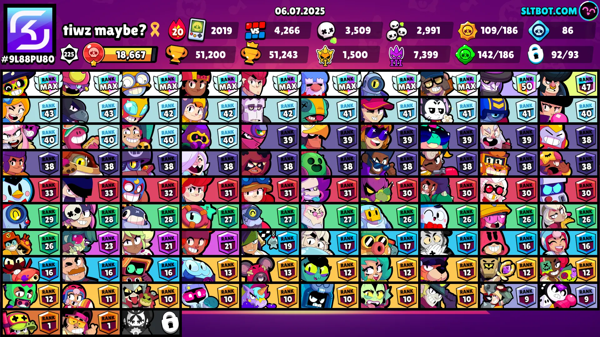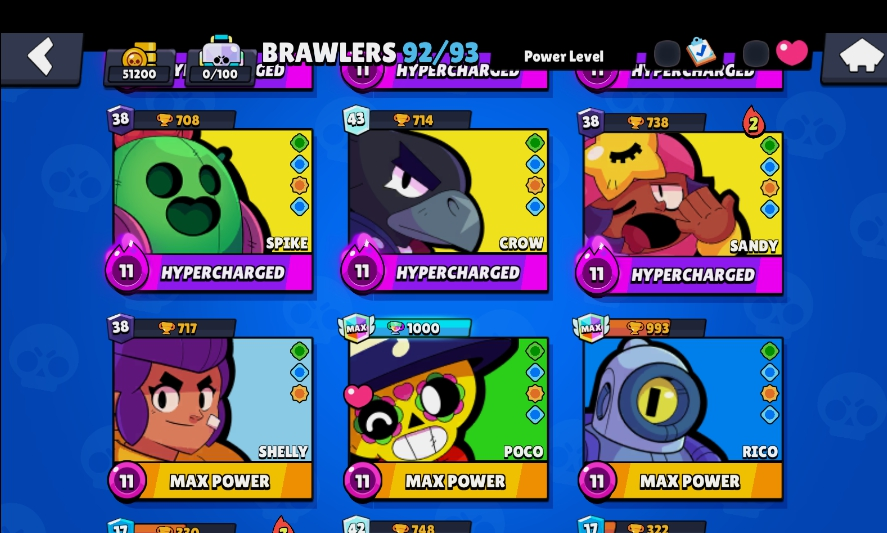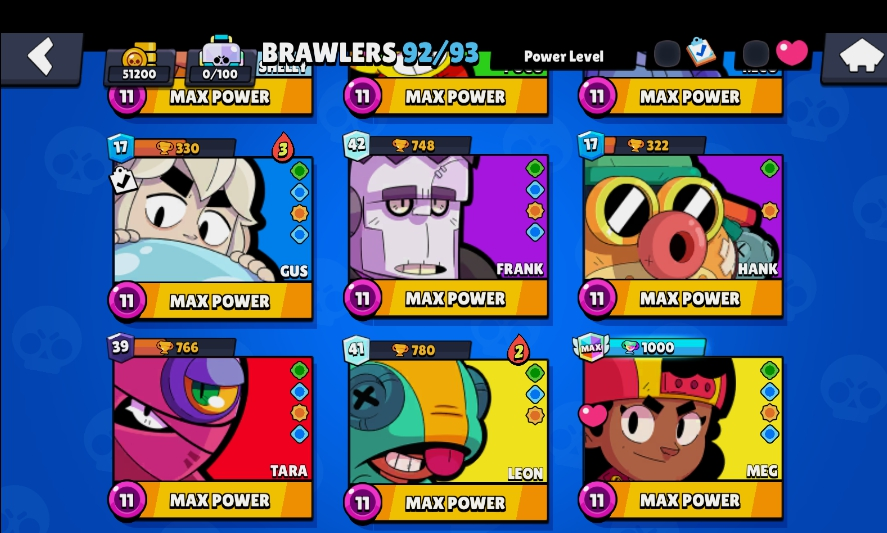 -204 GEMS ⭐ PRO PASS ⭐ 227 SKINS ⭐ 51.200 TROPHY ⭐ 92 BRAWLERS ⭐ 25 MAX ⭐ 15 HYPERCHARGED ⭐ CHAINSAW BUSTER ⭐ CURSED KENJI ⭐ MECHA MORTIS ⭐ KONG SURGE ⭐ KABOCHA FANG ⭐ SPIKE ⭐ LEGENDARY ⭐ LEON