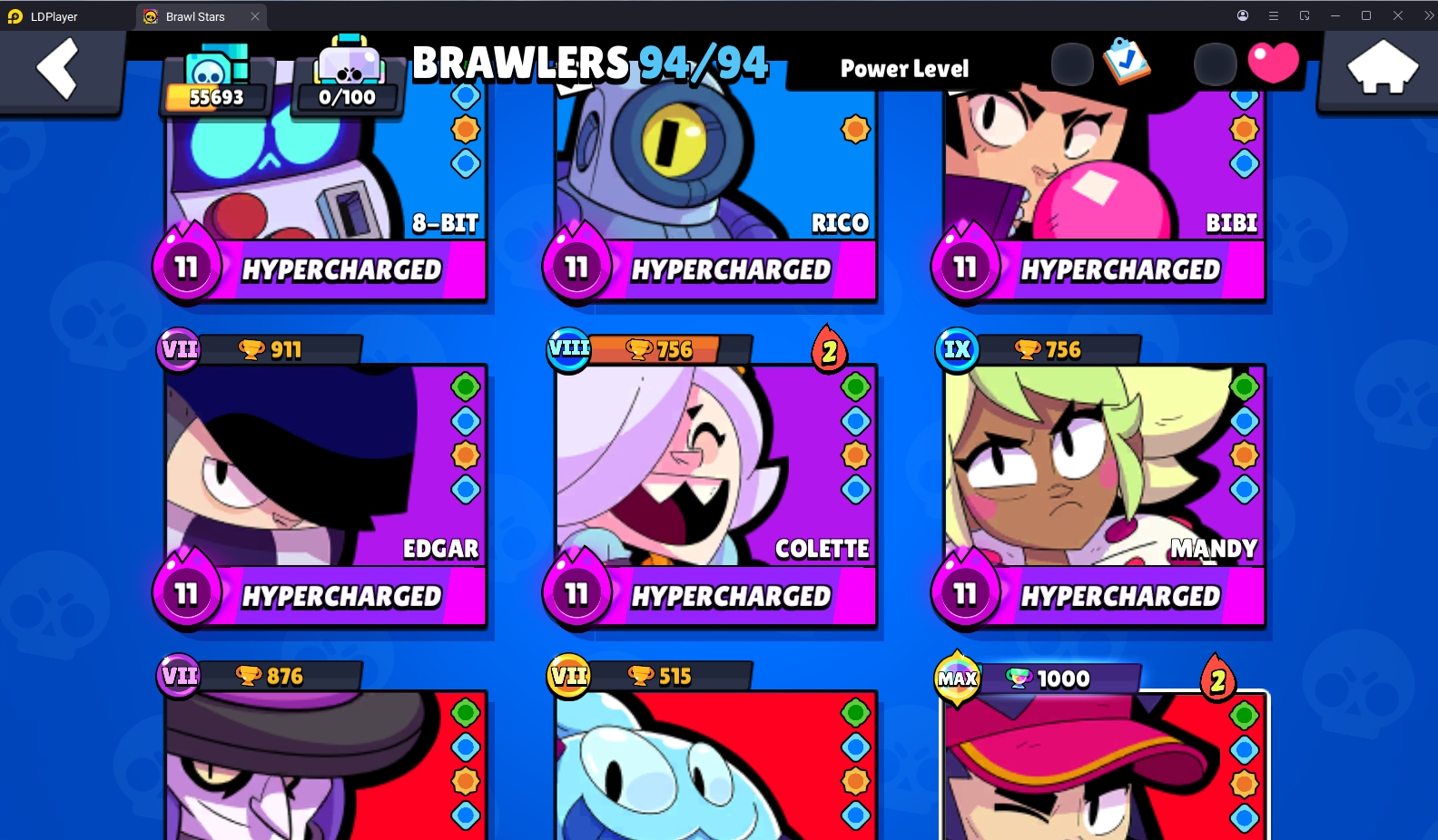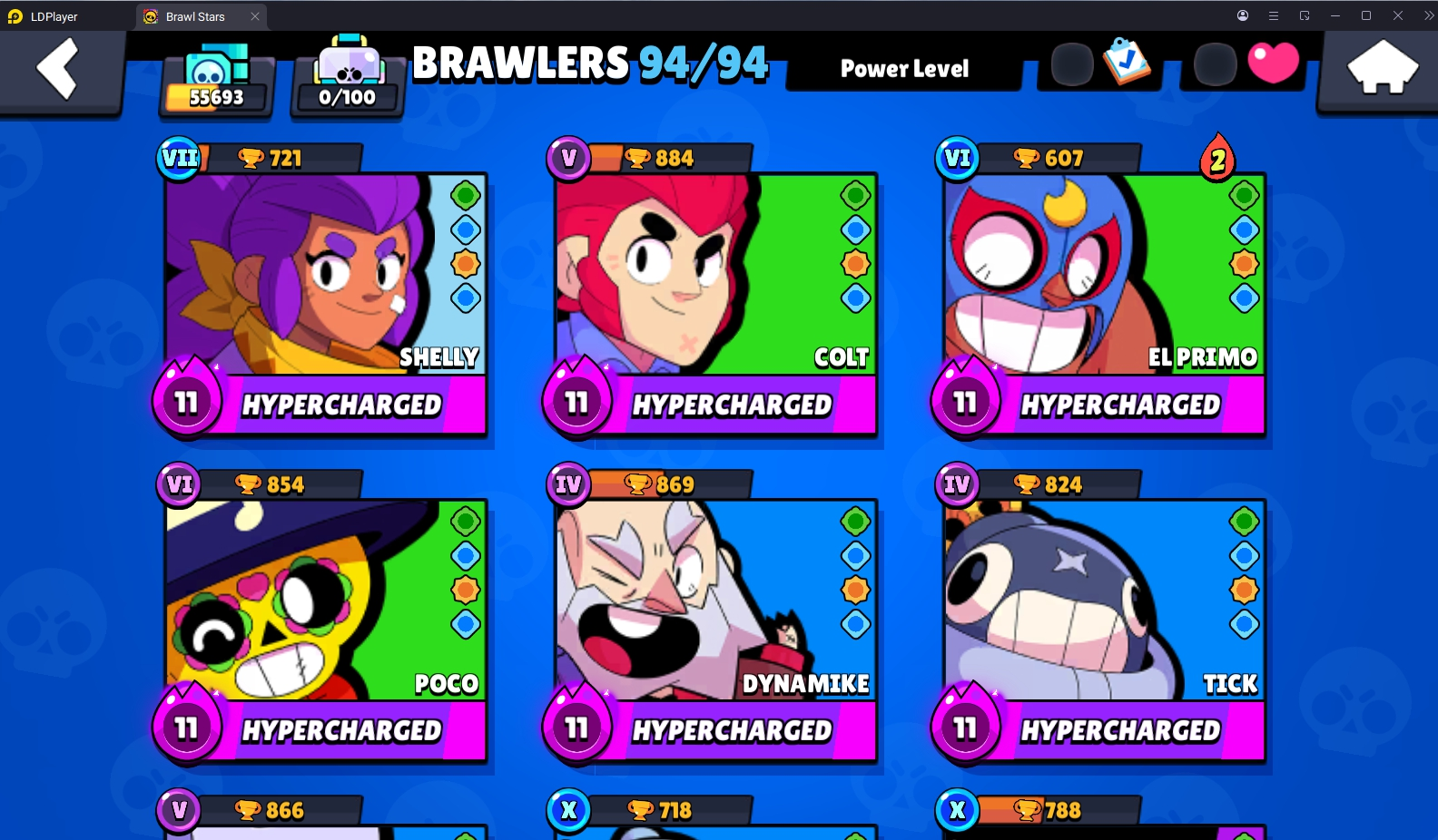 228 SKINS 💯 55.693 TROPHIES 🏆 94 BRAWLERS 🐼 22 HYPERCHARGED 🩸 26 MAX BRAWLERS 💛 NIGHT MECHA CROW 🧡 FURIOUS FANG 🧡 STELLAR SHELLY 🧡 CURSED KENJI 🧡 ODIN CORDELIUS 💯