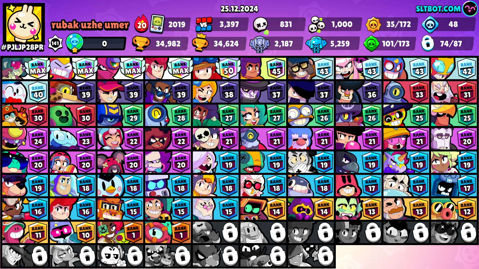 34.600 TROPHY | REBEL LOLA | 4 MAX RANK | 74 BRAWLERS | 100 SKINS | 6 MAX | 4 HYPERCHARGE | INSTANT DELIVERY