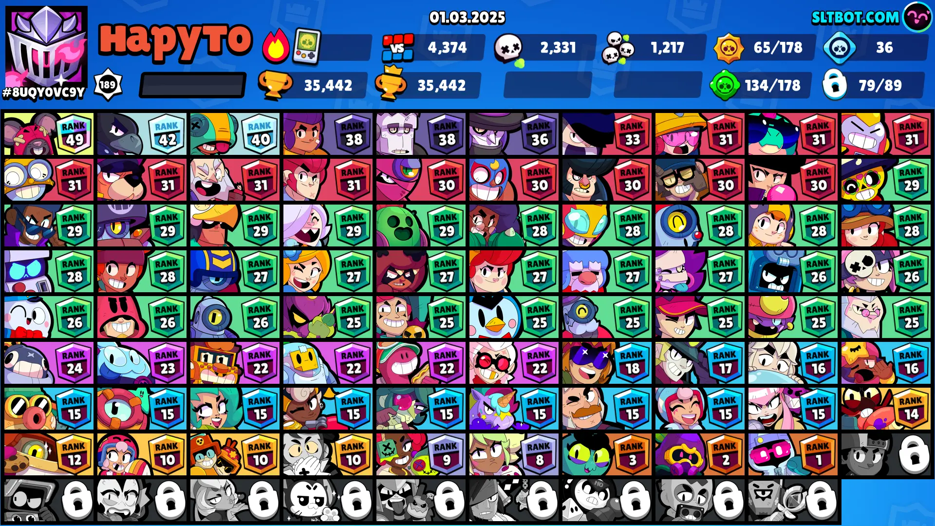 35.400 TROPHY | SHARKTOOTH COLT | 79 BRAWLERS | 117 SKINS | 6 MAX | 4 HYPERCHARGE | INSTANT DELIVERY