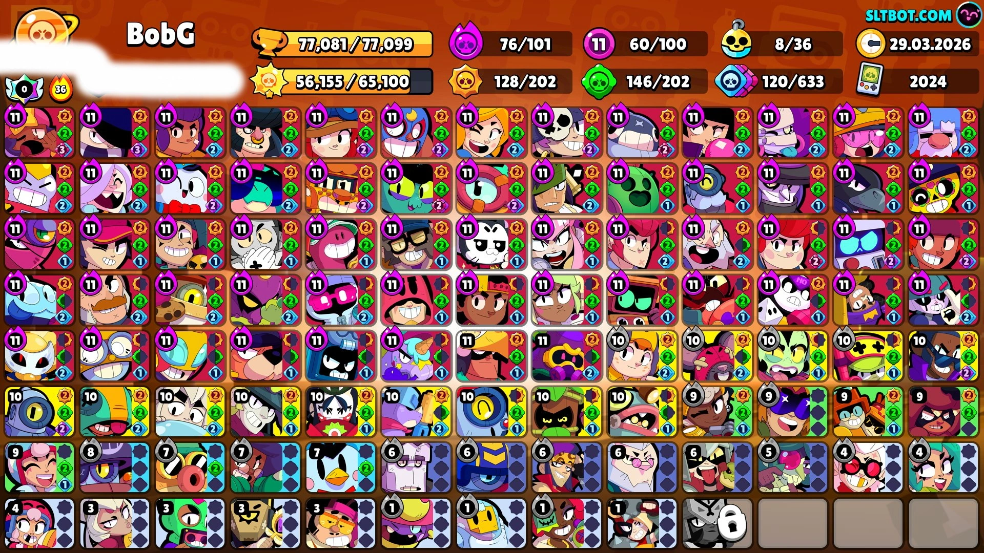 375 SKINS 💯 X4 LEGENDARY 2025 🧡 77.081 TROPHIES 🏆 100 BRAWLERS 🐼 58 HYPERCHARGED 🩸 42 PRESTIGE 💜 60 MAX BRAWLERS 💛 8 BUFFIES 🔑 ONI KENJI 🧡 DEMON MORTIS 🧡 SPONGEBOB EL PRIMO 🧡 ARCHER QUEEN PENNY 🧡 TRICKY JANET 💯 60K 70K