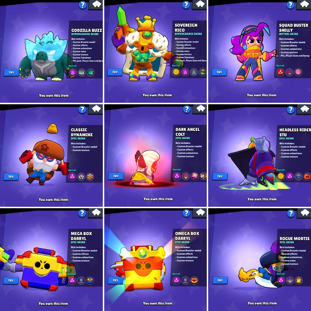 51 BRAWLERS ⭐️ 50 Skins ⚡ 2 Hypercharge Skins 🏆 10,215 Trophies