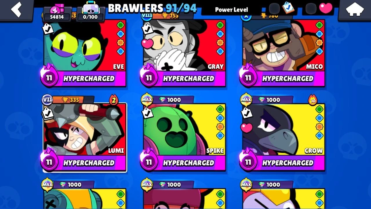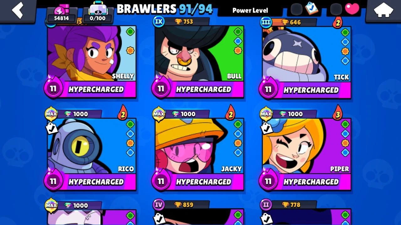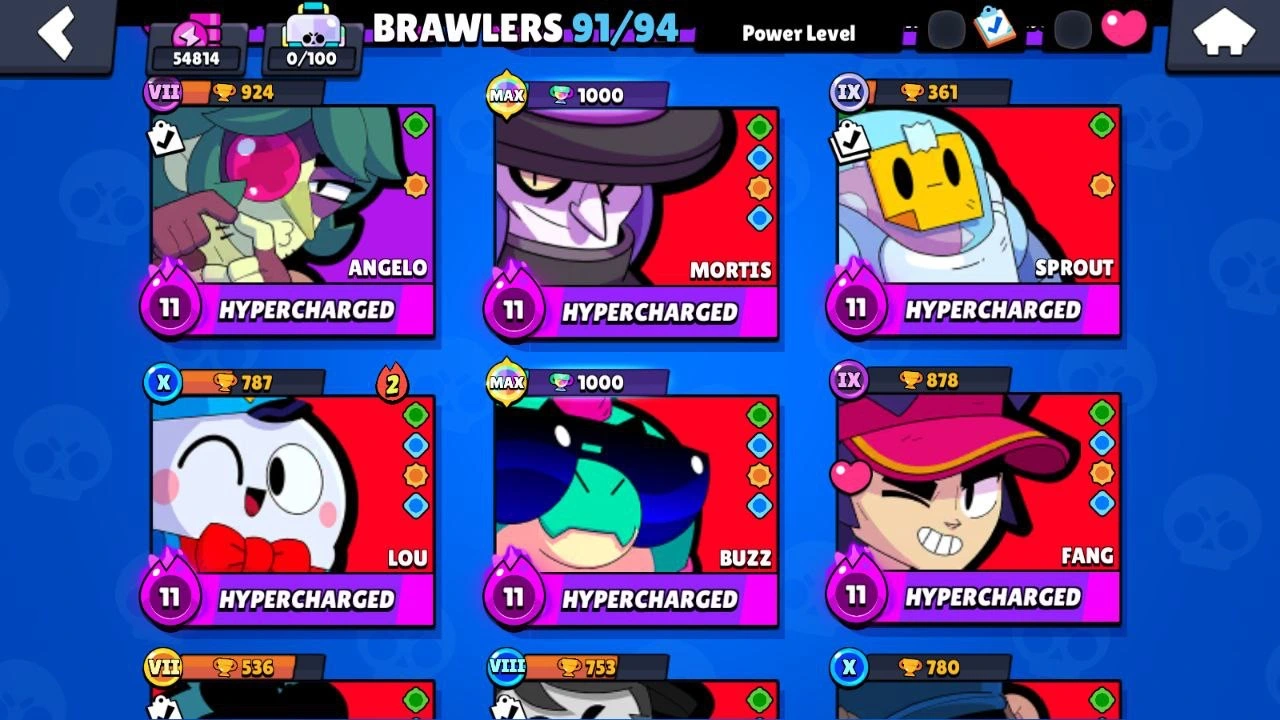 54 800 🏆 | 91 + BRAWLERS ❤️🔥 | 32 x POWER 11📈| 29 x HYPERCHARGED |  195+ skins 🎭  | 100% safe account | PREMIUM ACCOUNT