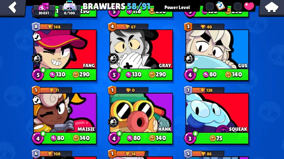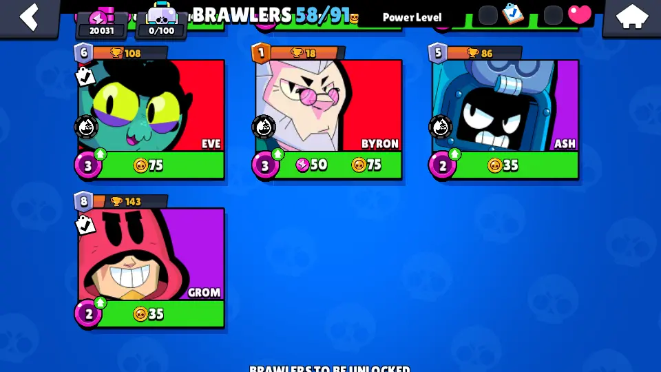 ✅ 58 BRAWLERS ✅ 20000 TROPHIES 🔰 29 SKINS 🔰 RANK 25 [19] 🔰 RANK 35 [5] 🔰 1 MAX POWER 🔰 4 LEGENDARY 🔰 BR322