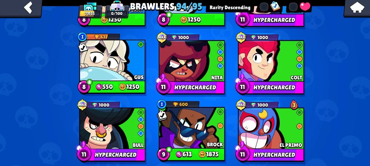 ✅ 71.5K Trophies ✅ 94/95 Brawlers ✅ 23 Hypercharge ✅⭐ GOOD PUMPING ⭐ FULL ACCESS ⭐