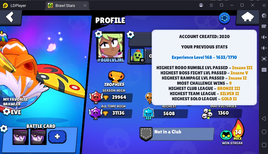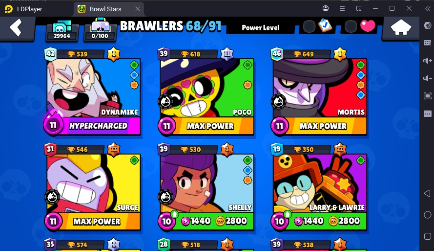 76 SKINS 🩵 29.964 TROPHIES 🏆 68 BRAWLERS 🧸 1 HYPERCHARGED 🍒 4 MAX BRAWLERS ⭐ GLITCH LARRY & LAWRIE 🩵 MARAUDER MAISIE 🩵 MOTHRA EVE 🩵 NIGHT WITCH MORTIS 🩵 PIANO 8-BIT