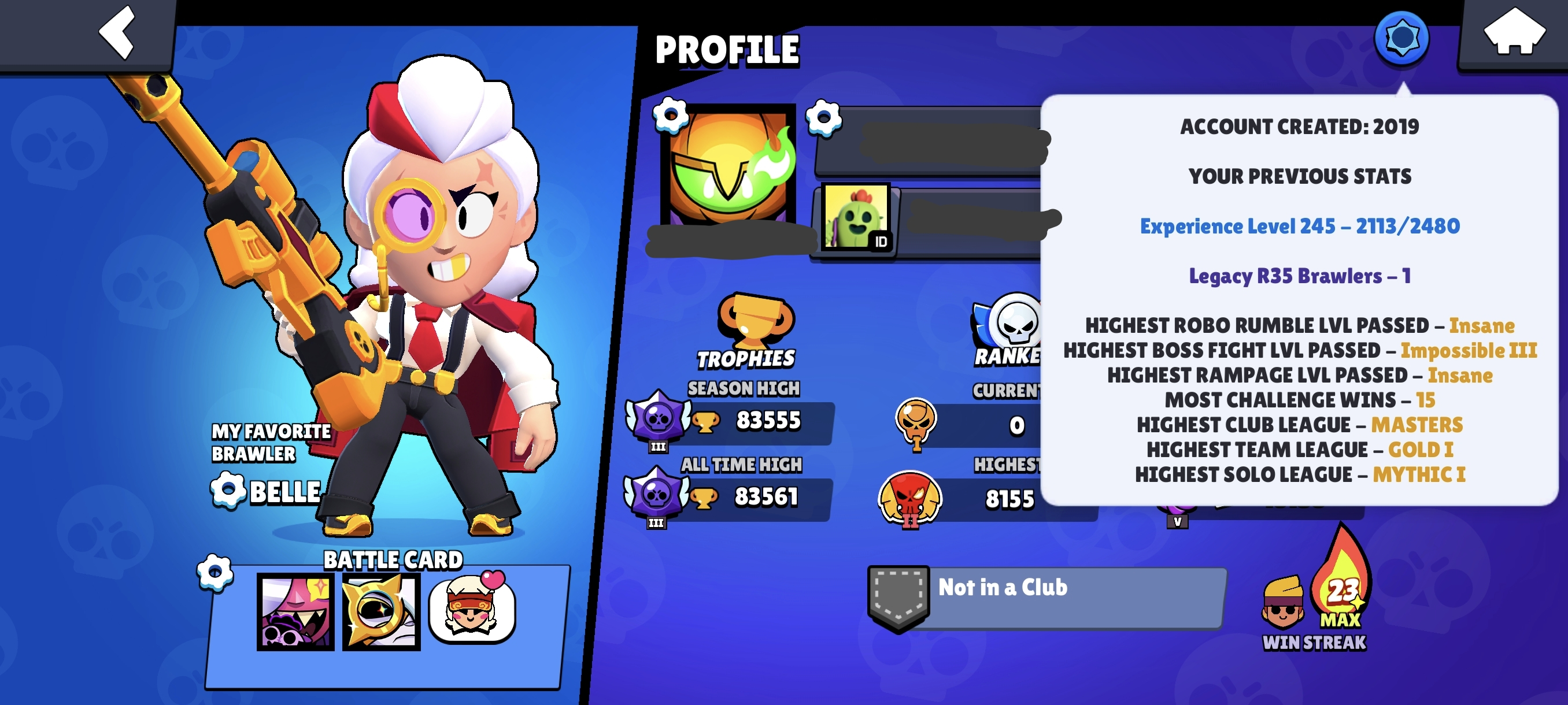 🌙 83k Trophy 🌙 1x Legacy r35 🌙 Mythic 1 Power league 🌙Supercell Id Changeable 🌙 Trixie Colette 🌙 Belle Goldhand 🌙 Furious Fang 🌙Saturnian 1 Fame 🌙