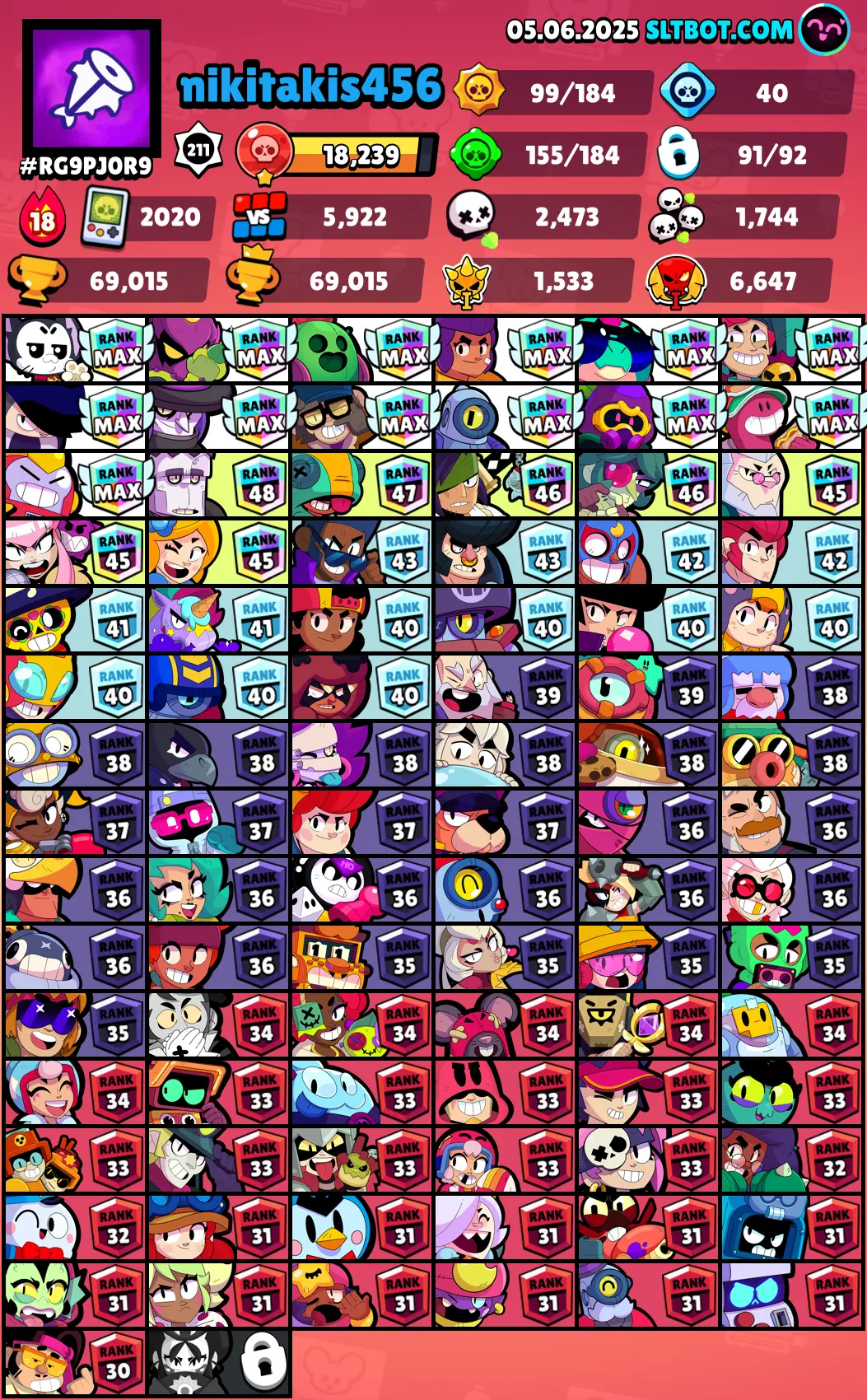 91 Brawler 💀| 69k Trophy🏆|Max Brawler 18 | Haypercharged 14| Skin 133🗿| 1000+ Trophy Brawler 13 | 69000 | instant Delivery | Android & IOS