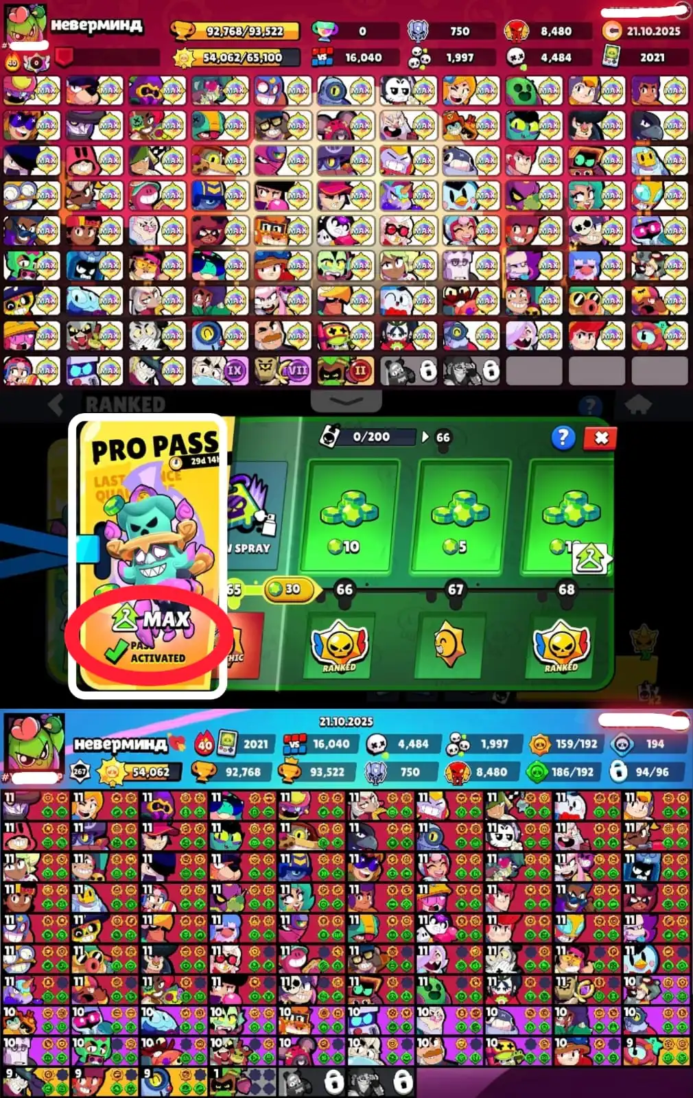 🔥 93,522 TROPHY 🔥 | 🃏 94/95 BRAWLERS 🃏 | 69 MAXED BRAWLERS 😈 | 287 SKINS 👒 | XP 188 | 🔑 FULL MAIL ACCESS 🔒 | 93K 🏆 | HYPERCHARGED 55 ✨ | LEON,SPIKE,SHELLY,SURGE,AMBER,CROW