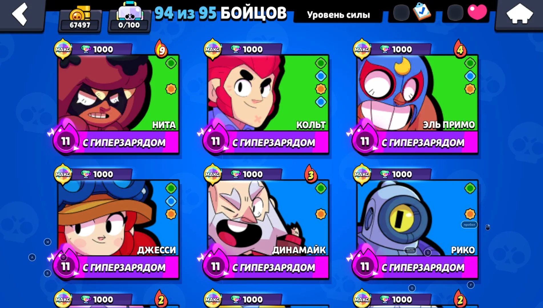94 Brawlers 67,516 Cups 213 Level 12 Easy 33-11 Strength
