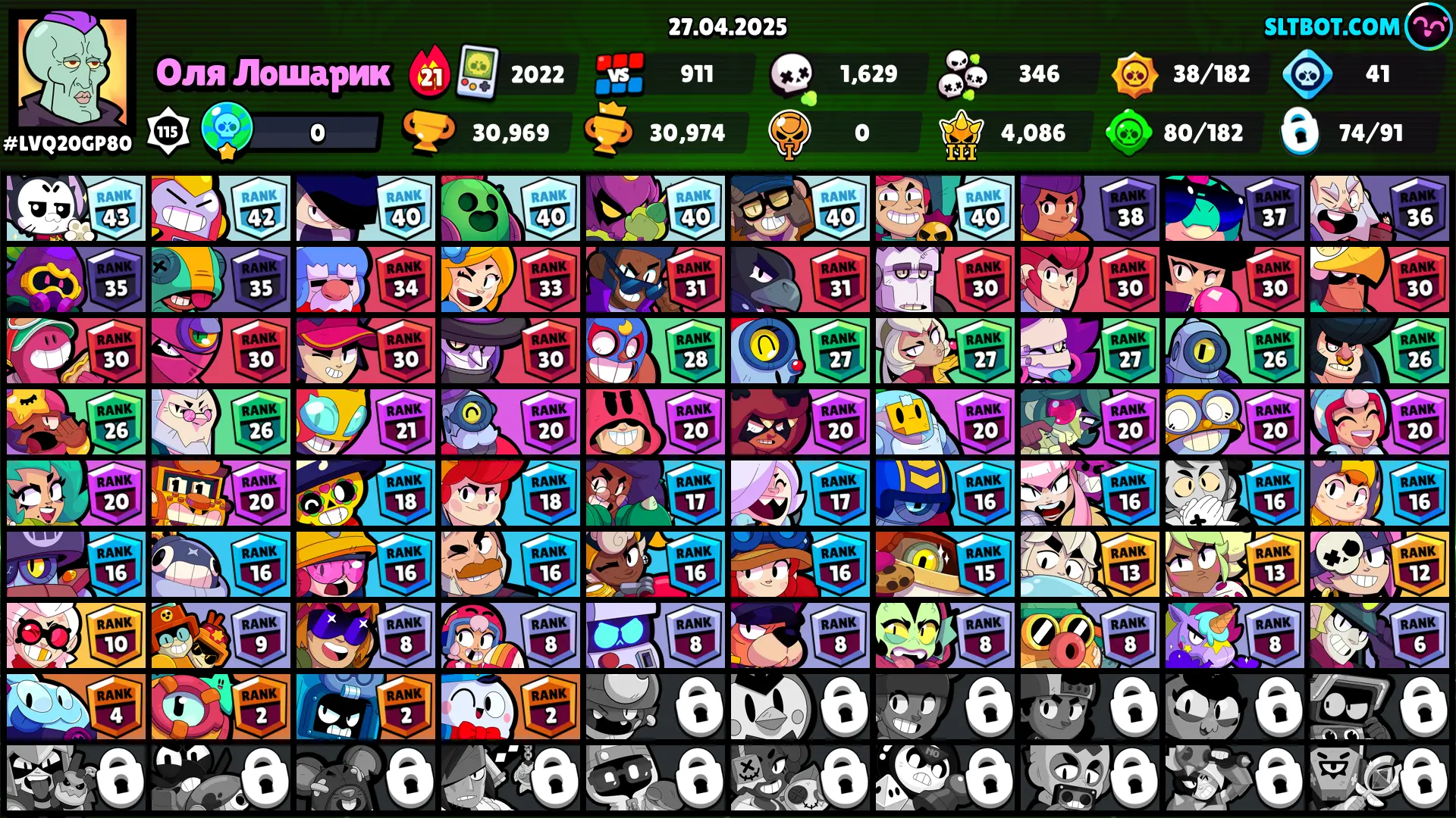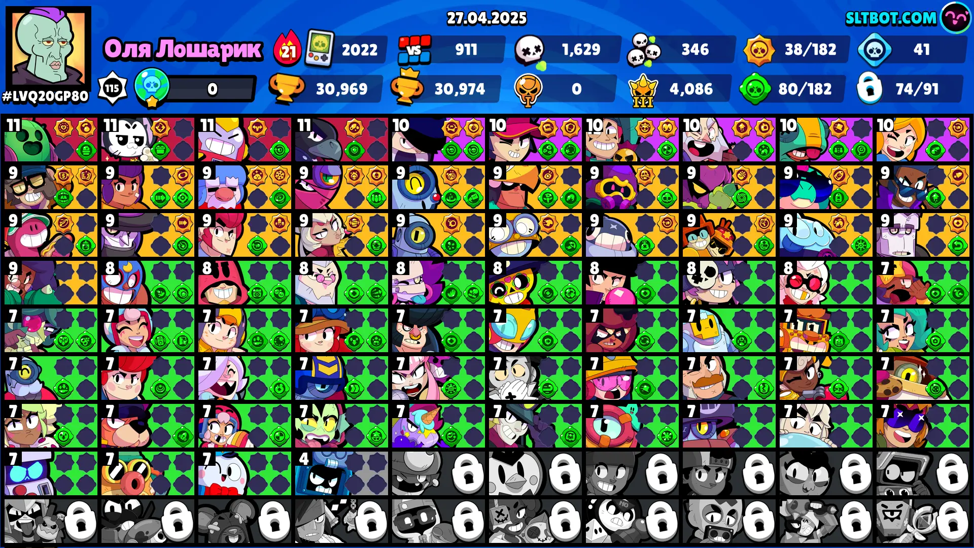 98 SKINS 🩵 30.969 TROPHIES 🏆 74 BRAWLERS 🧸 1 HYPERCHARGED 🩸 4 MAX BRAWLERS 🩷 CROWBONE🩵 SUPER RANGER BROCK BLUE 🩵 LUNAR PIPER 🩵 UNDERWORLD BO 🩵 TANUKI JESSIE🩵 TENGU MIKE 🎀