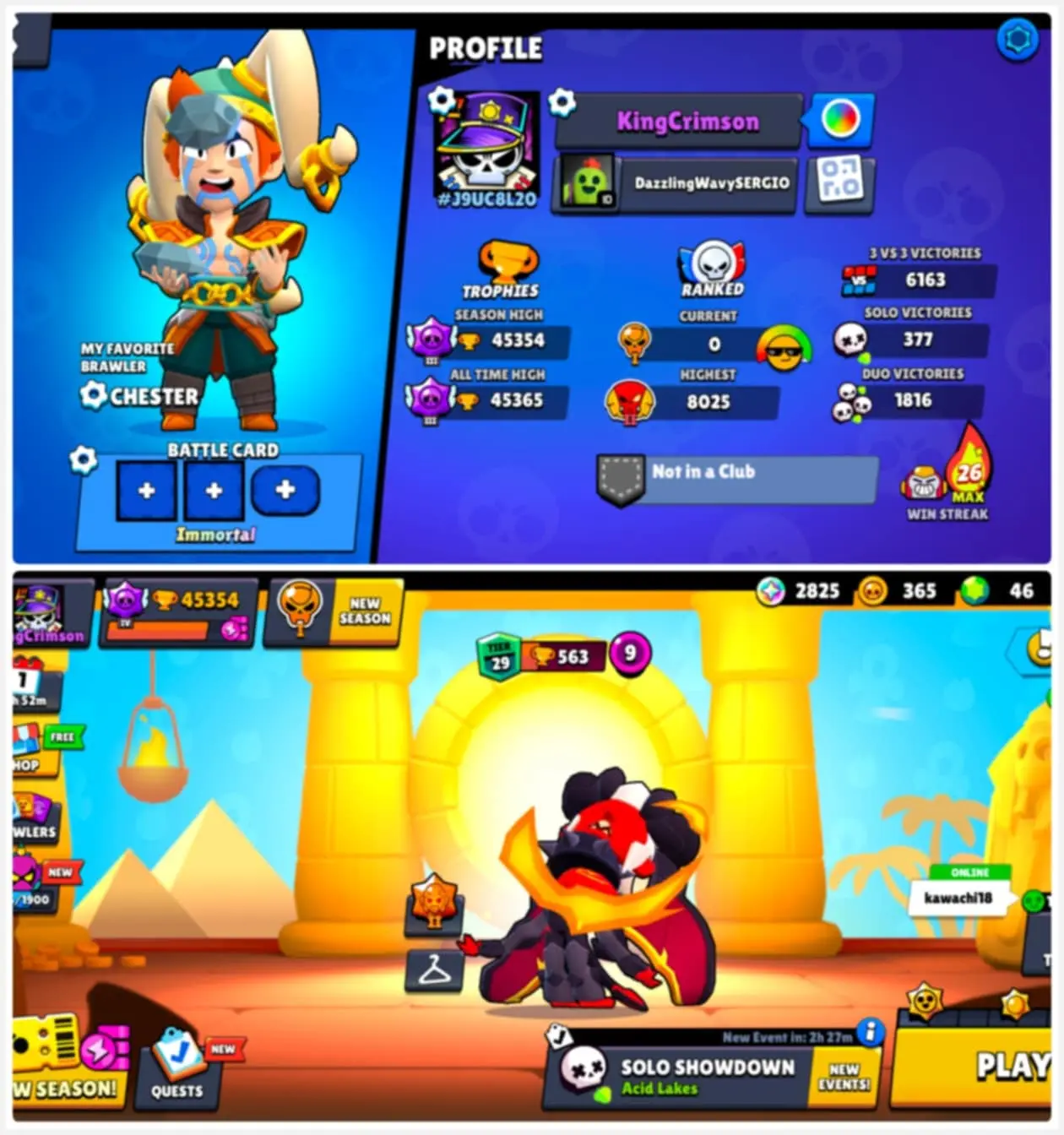 STAR SHELLY🔥 45K+ TROPHY BEST ACCOUNT ✨ 125+ SKIN 🔥 DEMON MORTIS- BANANAS COLT ✨ 14 HYPER 2 MAX TOTAL 16 MAX 🔥 82 BRAWLER ✨ RARE ACCOUNT 🔥 8k HIGHEST RANK