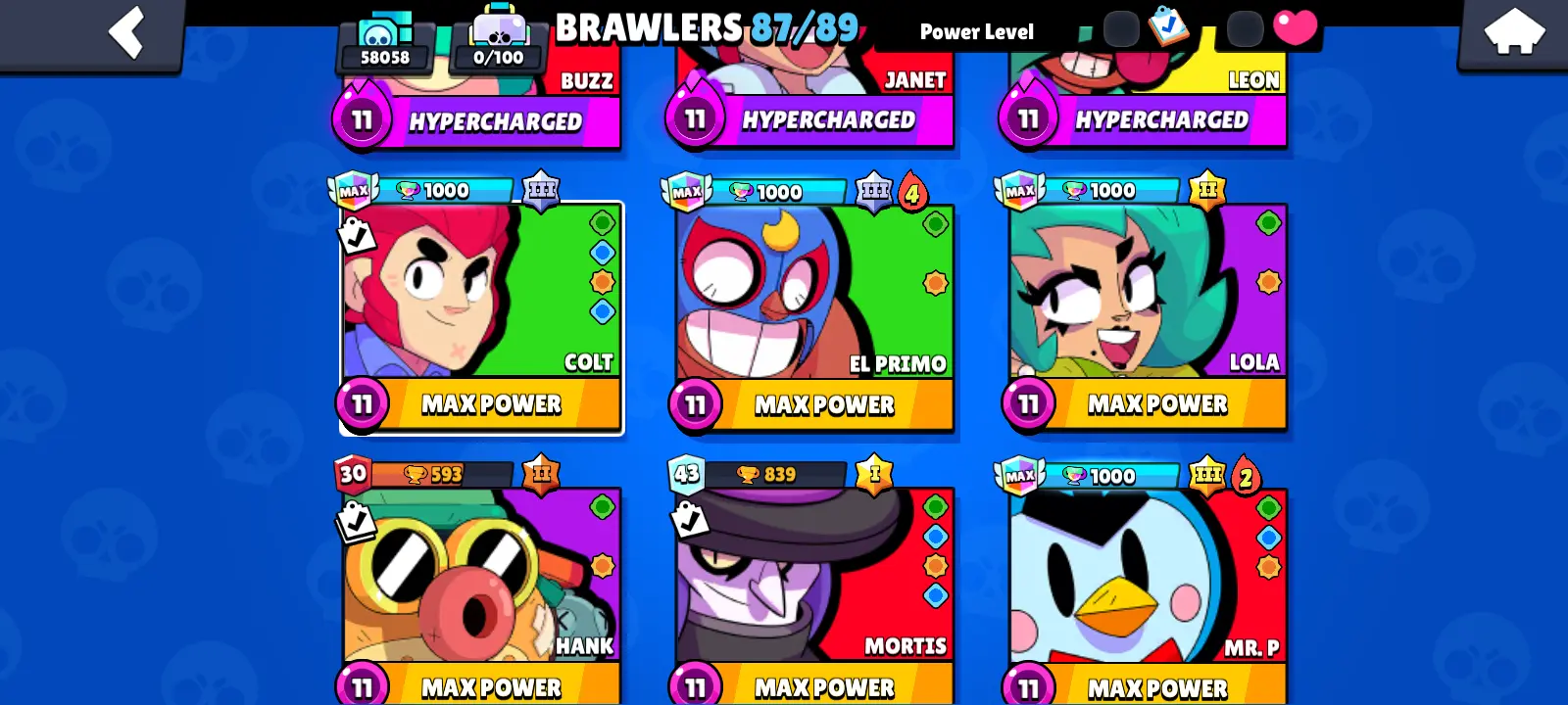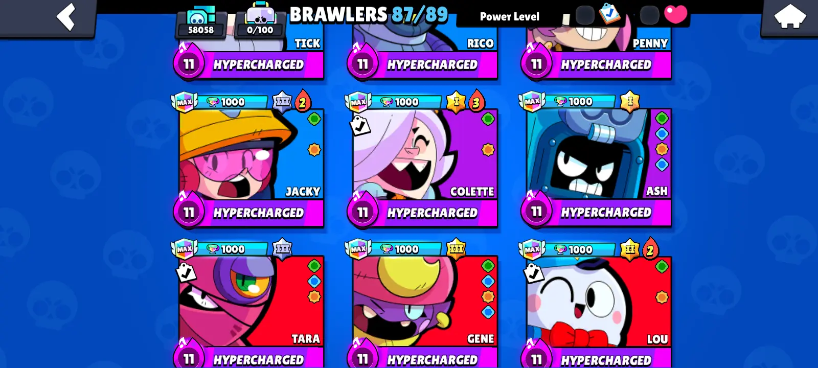 🤯THE LEGENDARY CHALLENGER COLT🔥[OP]🏆58K+ TROPHIES🤖87/89 ALL BRAWLERS UNLOCKED😈20+ MAXED BRAWLERS [12 HYPERCHARGED BRAWLERS]🤩PRESTIGE TROPHY😍200+ PREMIUM SKINS🤝SAFEST ND INSTANT DELIVERY!