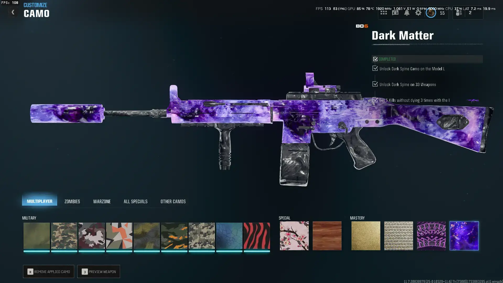 🚀 BO6 / WZ4 Dark Matter Account 🚀 | Prestige 8 👑 Lvl 55 🎯 | 33 DM Weapons 💎 | 18 Operators ⚔️ | All Multiplayer & Zombies Camos 🌌 500+ | Instant Delivery & Cross-Platform 🔗