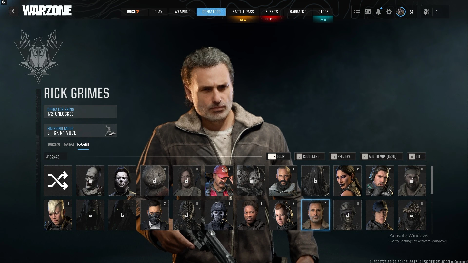 ⭐【WZ4/BO6】🔥【Prestige 1】x9 Battlepass Skins | Michael Myers-Rhea Ripley-Rick Grimes-Creepy Clown-Snoop Dogg-Valeria... | x90 Gun Leveled...