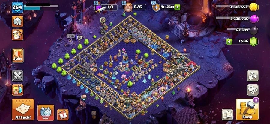 游戏的核心是你的主村庄,升级大本营决定了你可以建造什么,部队和英雄能够升级到什么等级,以及你可以进入哪些游戏模式。除了主村庄,还有一个建造者基地,拥有独立的进度系统,以及供团队合作游戏的部落首都。