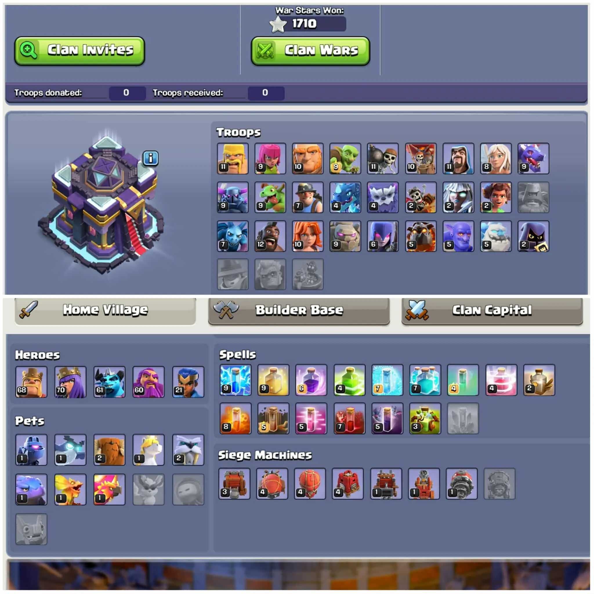 [1499 Cwl Medals]➤➤Th15 Best Account➤➤Heros:69-70-61-60-21➤➤6 Epic Equipment➤➤1550 Gems➤➤Exp:218
