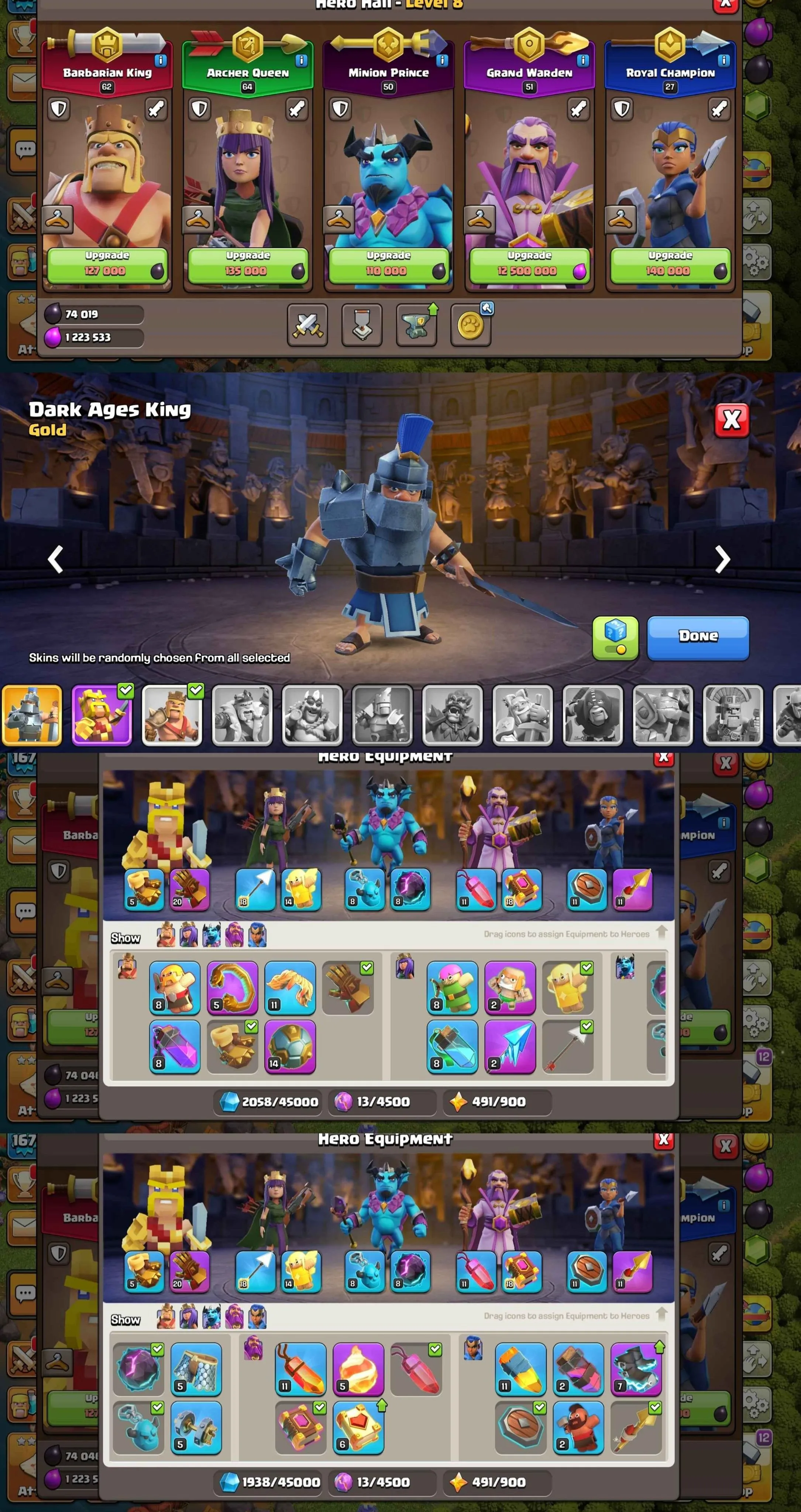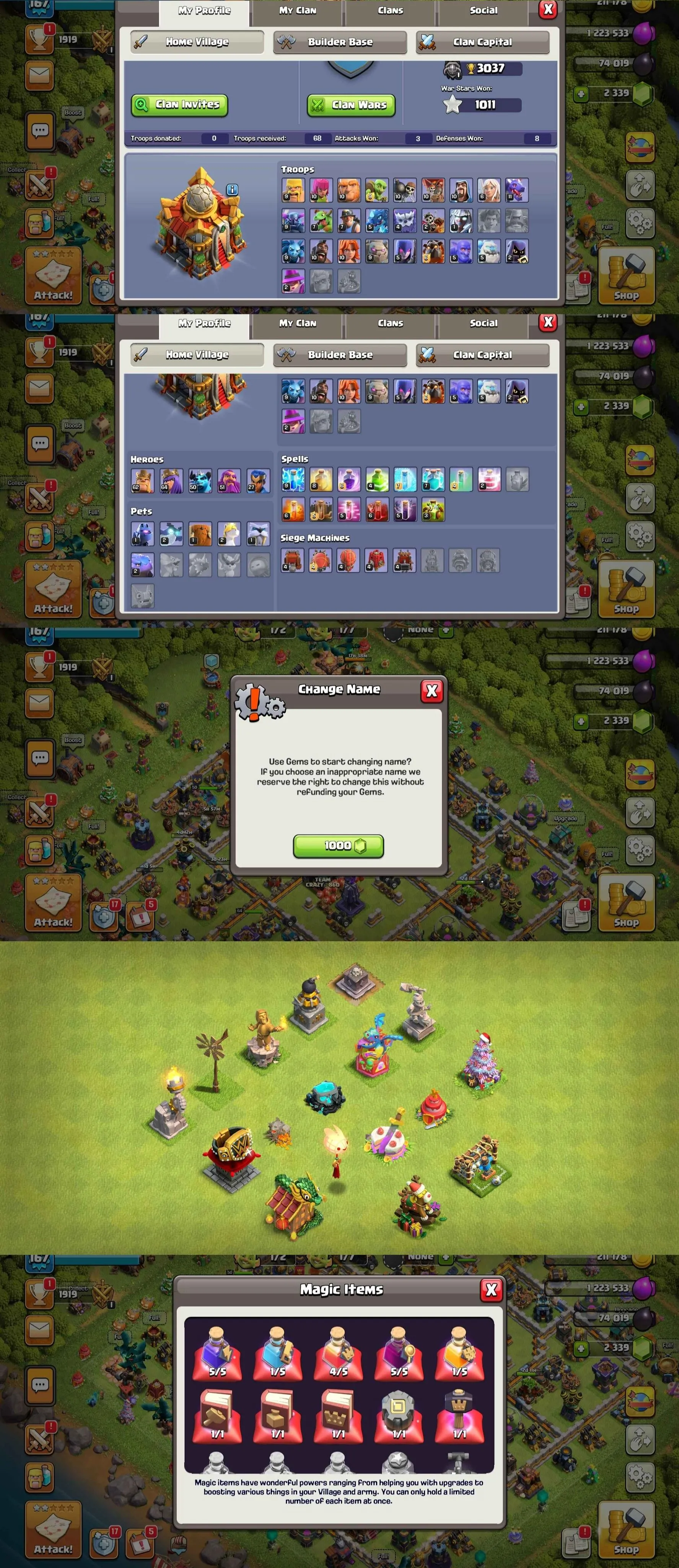 1605 | TH16 MAX ID | GEMS-2339| HERO'S: 62-64-50-51-27 | 8x EPIC EQUIPMENT | WHITE WALL | XP 167 | 4 SKIN | NC 1000