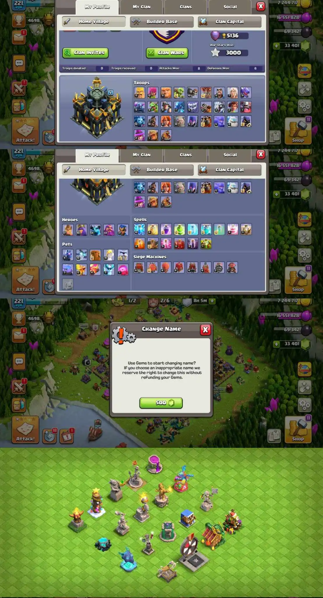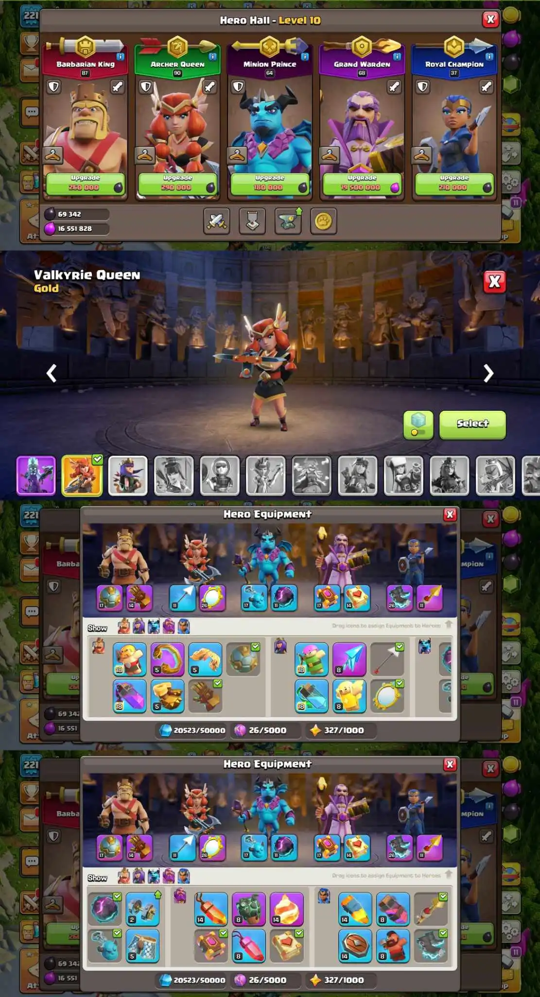 1702 | GEMS-33401 | TH17 MAX | HEROS-87-90-64-68-37 | EXP 221 | NC-500 | 2 HERO SKINS | 9 EPIC EQ | 10 PETS | 6 BUILDERS