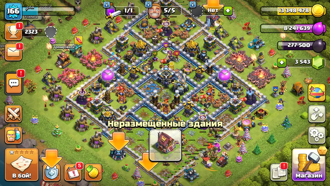 C1228 166 XP+TH13+4 Stars+3523 Gems Bk61 Aq-62 Gw-26+War Stars 363+Builder Bas 8+IOS/ANDROID