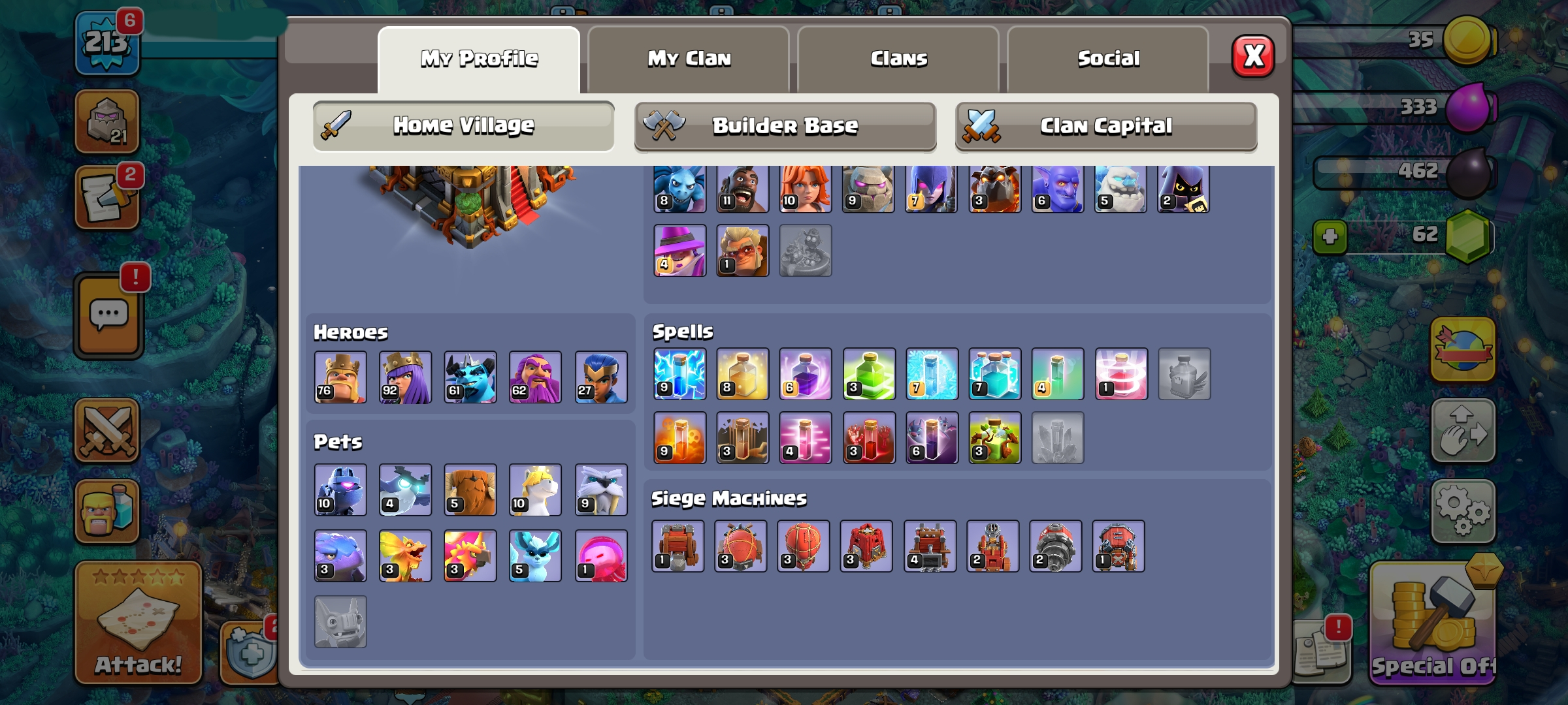CC-88 TH16/LV 213 [ 6 Epic Equipments ] Heroes 75/92/60/62/27 | Dragon Place Scenery | Good Deffense & Equipments