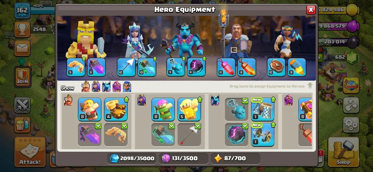 CHEAPEST SEMI MAX TH14🌟 HEROES 56-57-42-35-12🔥 4 OG SKINS✨️ HIGH LVL EQUIPMENTS😈 SOLID DEFENSE & BUILDER BASE🎯 CWL MEDALS & MAGIC ITEMS STACKED👑 PIXEL SCENERY💫 FREE RENAME✅️ INSTANT DELIVERY🚚