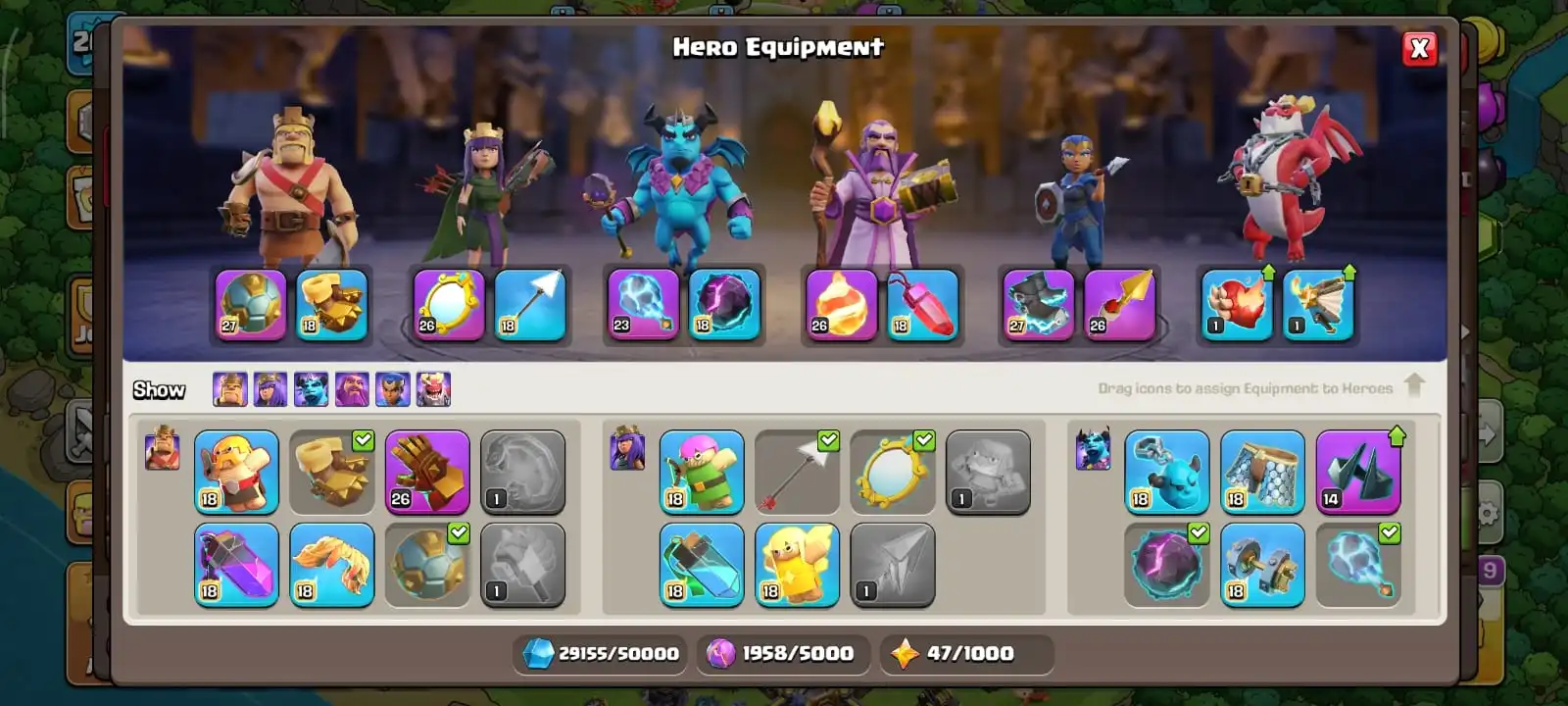 cheapest🔥th 18 all most max🔥high level hero 100-105-90-80-52🔥magic items ready🔥scenery 4🔥full access account🔥