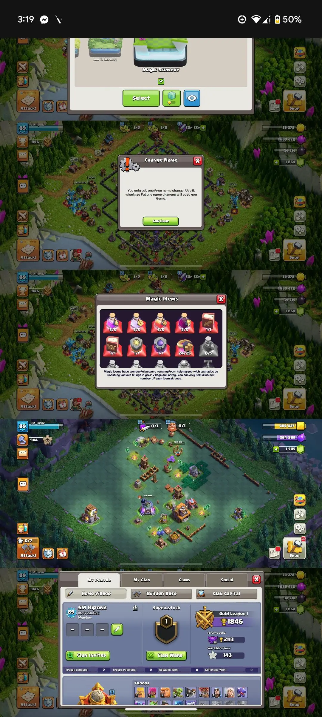 CUTE DEAL | TH16 RARE MAX ACCOUNT | HERO'S: 29-34-41-19-4 | NAME CHANGE FREE | BLUE WALL | GEMS 1800+ | XP- 89 | MAGIC SCENERY