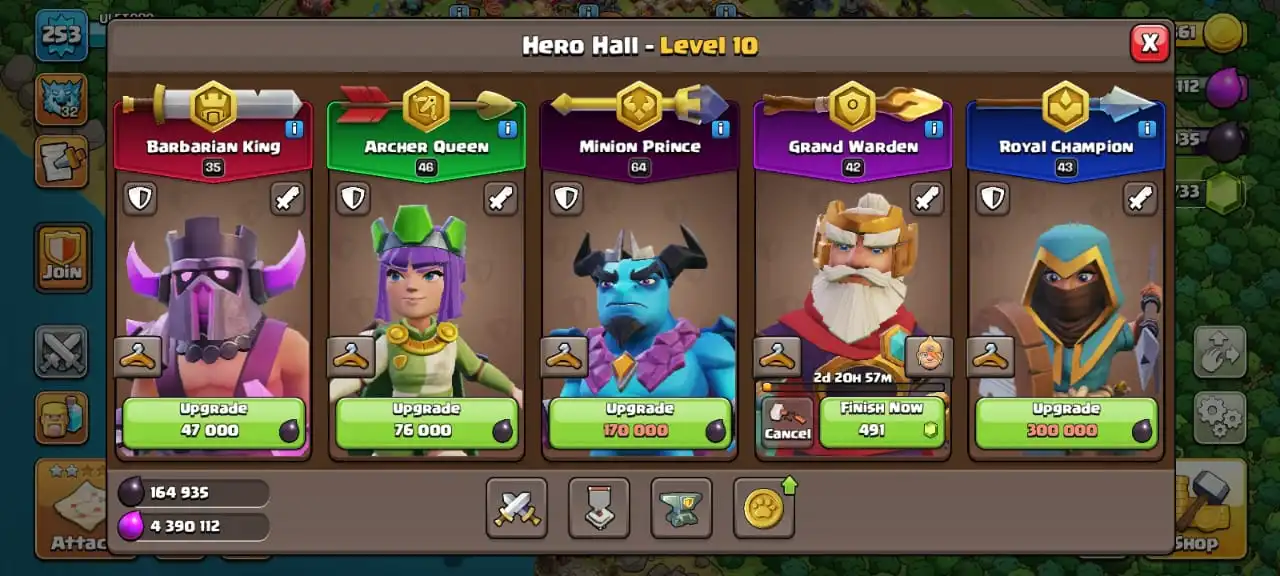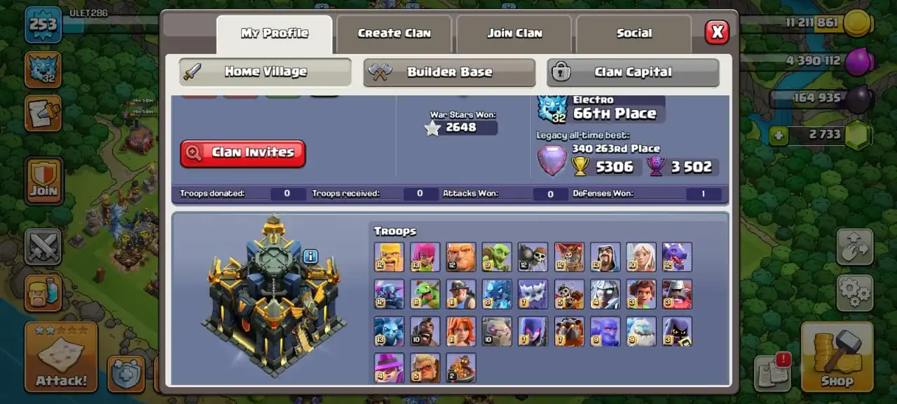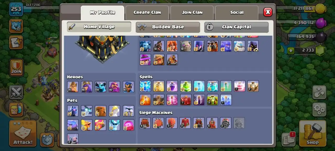 Donation acc✅TH 17 max defense🔥max pets🔥max main troops☠️full equipment 32/33⚒️max builder base✅cn on✅8 heroes skin
