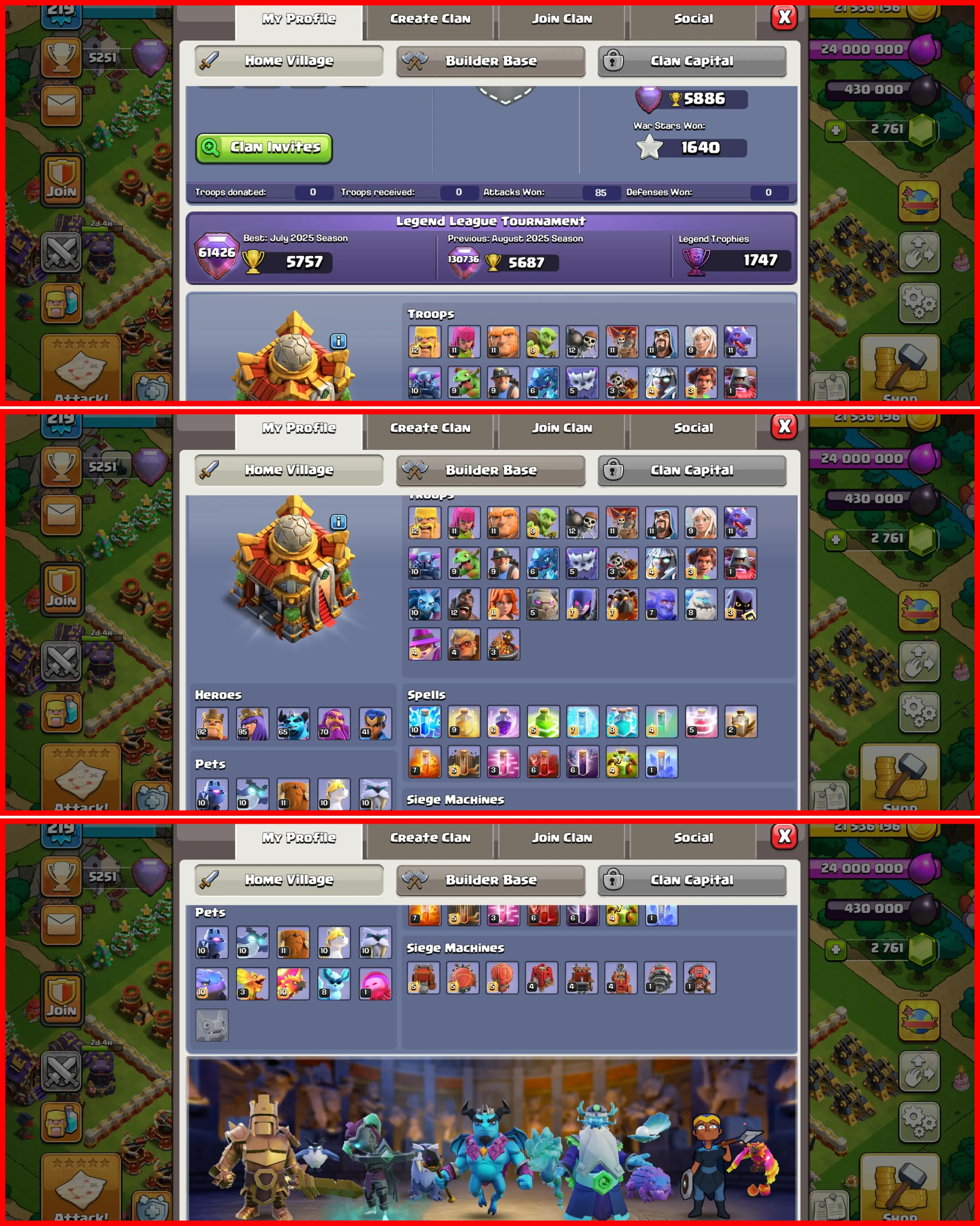 Fully Maxed Th 16 | 92-95-70-42 Max Heros | Profile Max | 2 Rare Scenarys | 11/11 Epic | Almost 8 Epic Max | 302 Medels | All Walls Max | All Dfnc Max | BB Max | 16 Skins | 3000 Gems | 5886 ATB
