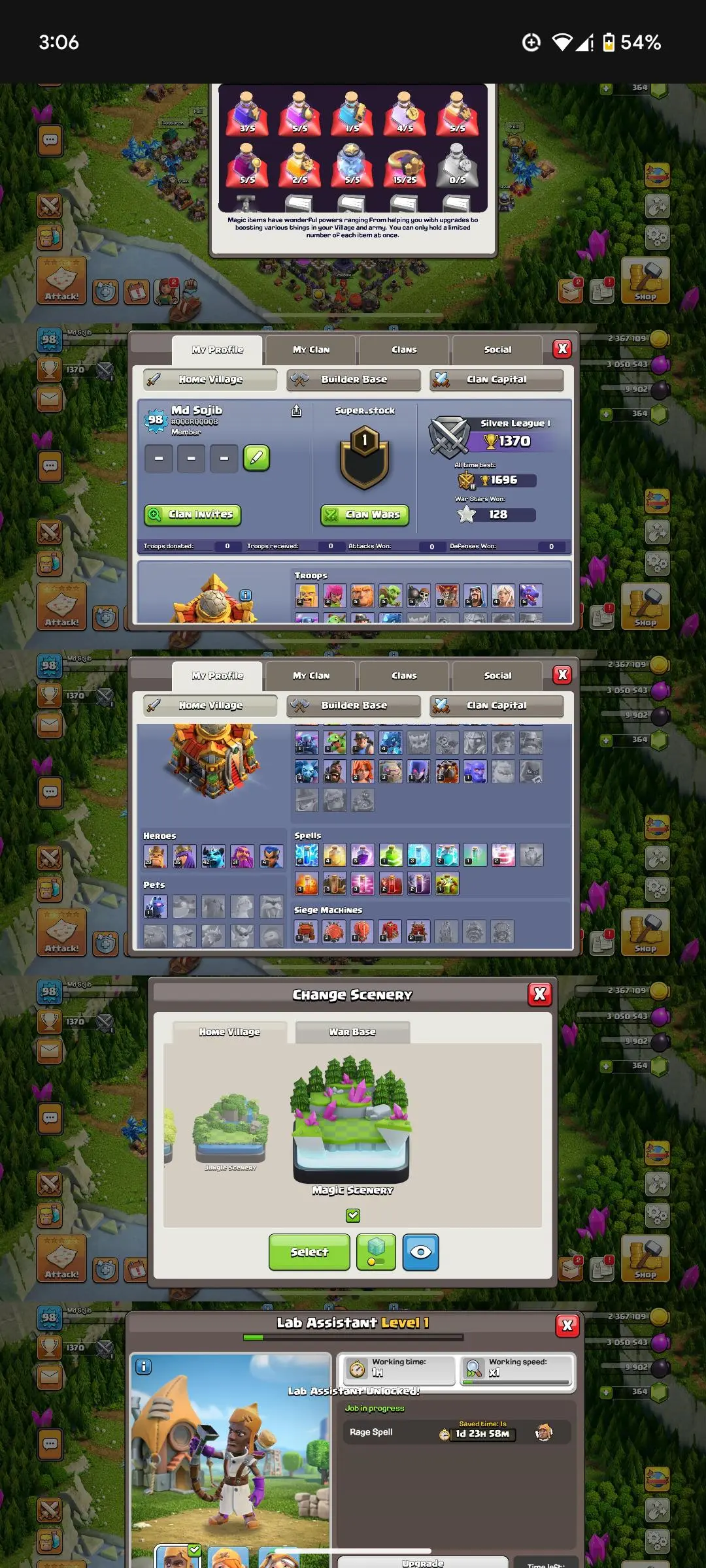 LOTS OF MAGIC ITEM | TH16 RARE MAX ACCOUNT | GIANT GONGLET | HERO'S: 29-35-42-31-4 | BLACK WALL | GEMS 300+ | XP- 98