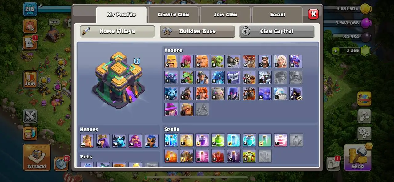 LVL 216 ⸱ [80/72/50/55/28] ⸱ Th 14 ⸱ Many Skins ⸱ Clash Royal 8226 Trophies ⸱ Brawl stars 12000 Trophies