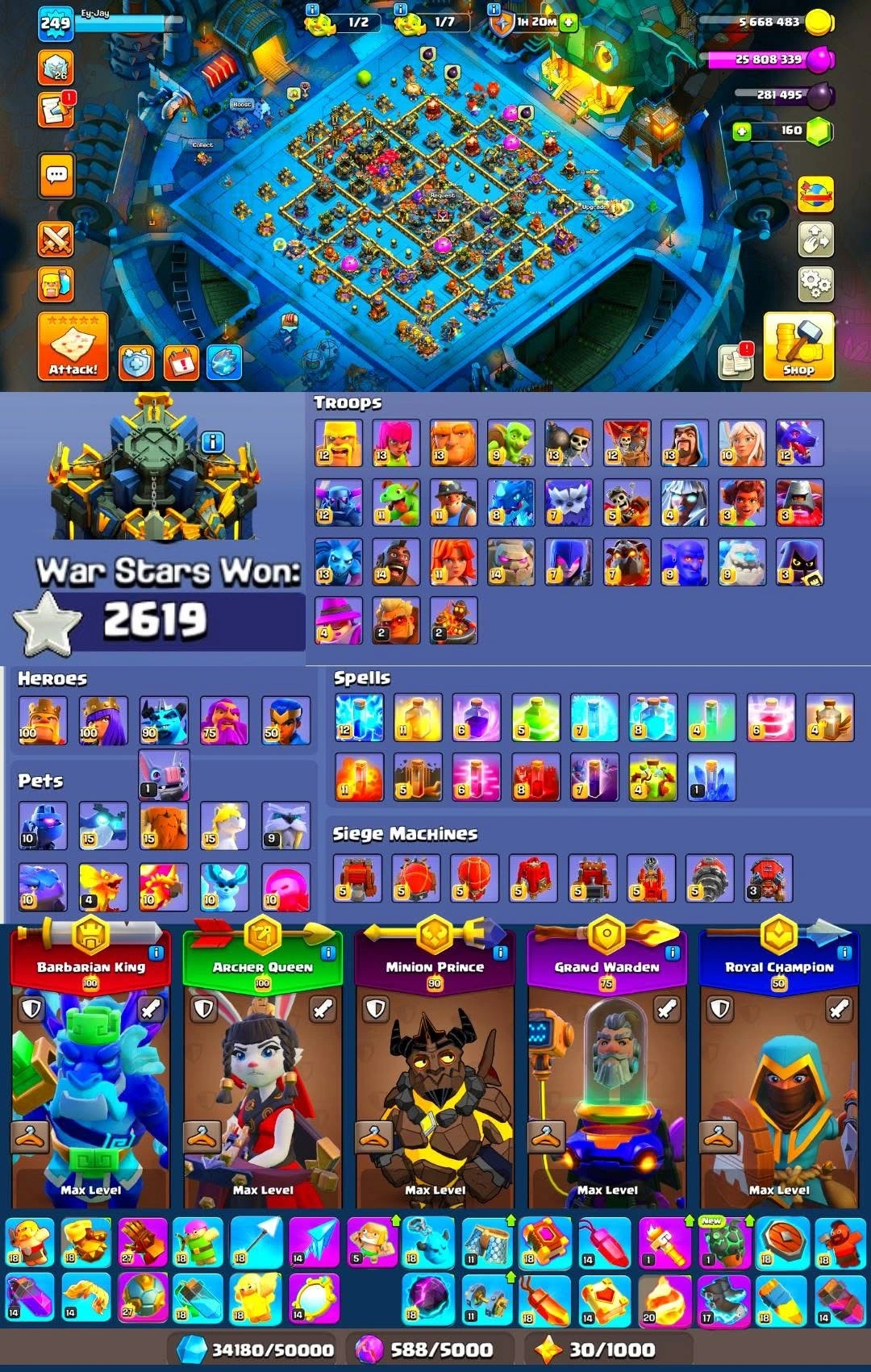 [Premium Max]➢Th17 Max 100%➢Nothing To Left➢5 Hero Max➢Max All Equipments➢Ready To Th18➢Profile Max➢Rare Skin/Scenery➢Full Ownership (#KF)