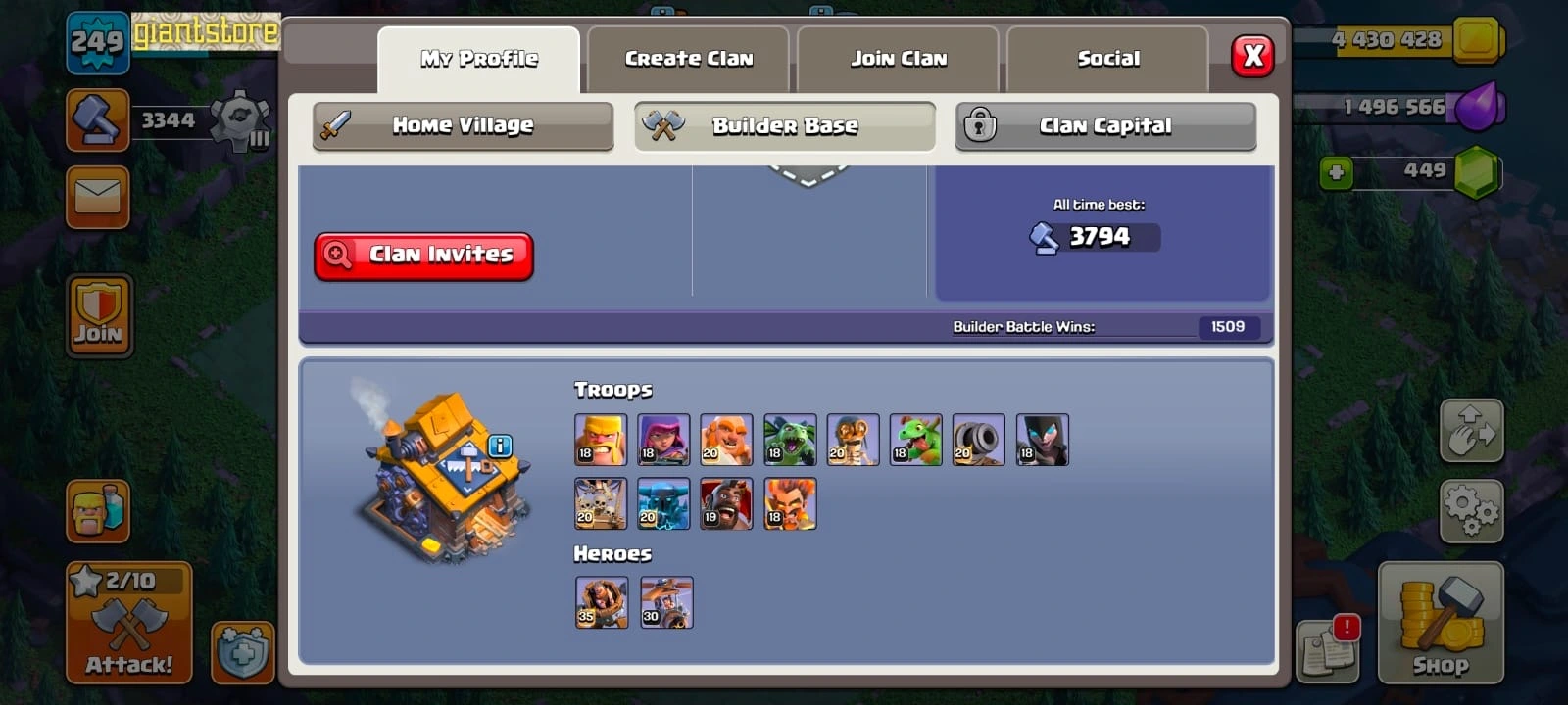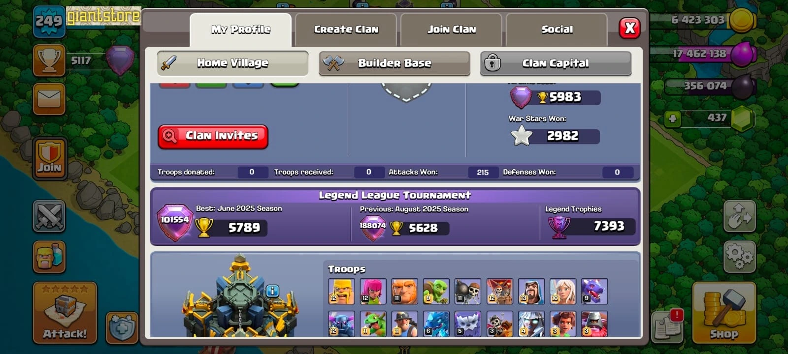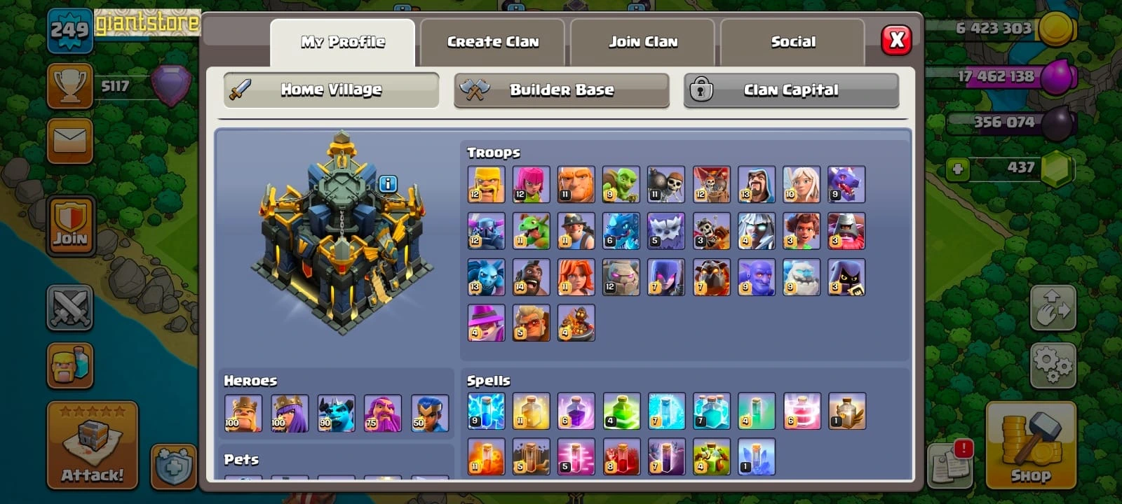 Rare☠️4 max epic equipment🔥TH 17 almost max🔥max heroes🔥max pets☠️8 epic equipment⚒️6 builder’s⭐️423 cwl medal✅war arena scenery and 8 heroes skin