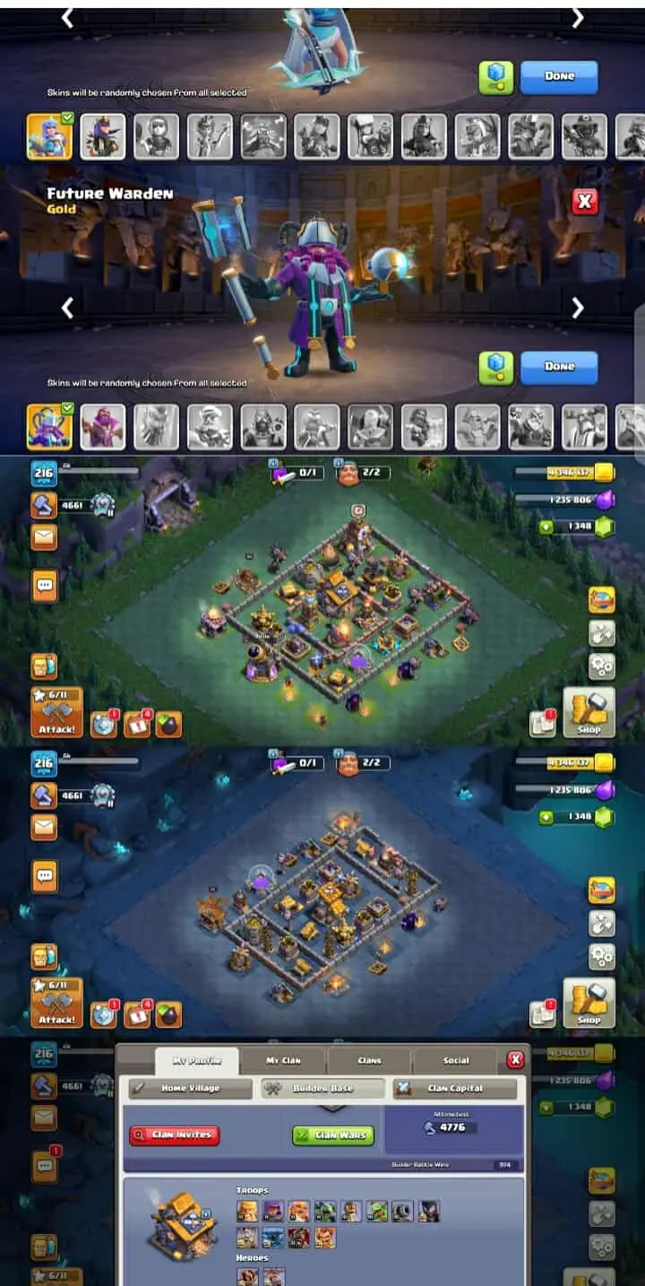 SUPER DEAL➠ MAX WHITE WALL➠ NAME CHANGE FREE➠ 9x EPIC➠ HERO'S: 72-79-70-59-45➠ XP-216➠ TH17 MAX ID➠ 5 SKIN➠ NIGHT BASE MAX➠ BUYER MAIL➠ LOTS OF MAGIC ITEMS