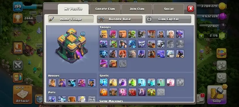 🛕 TH 14 | 🌟 LEVEL 199 | 🐅 BK 58 | 🦜 AC 59 | 🐉 MP 42 | 🌌 GW 34 | 🦖 RC 12 | 🏅 TROPHIES 2444 | 🚀 INSTANT DELIVERY | 🎮 COCN9987