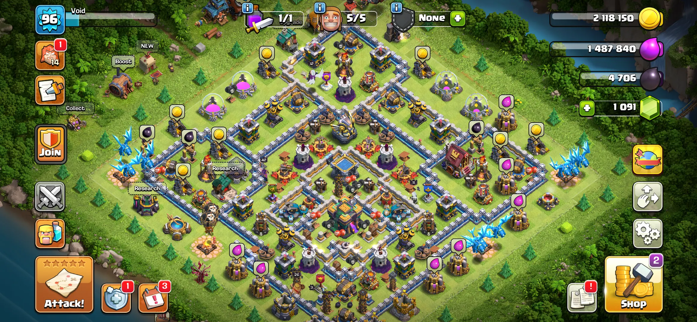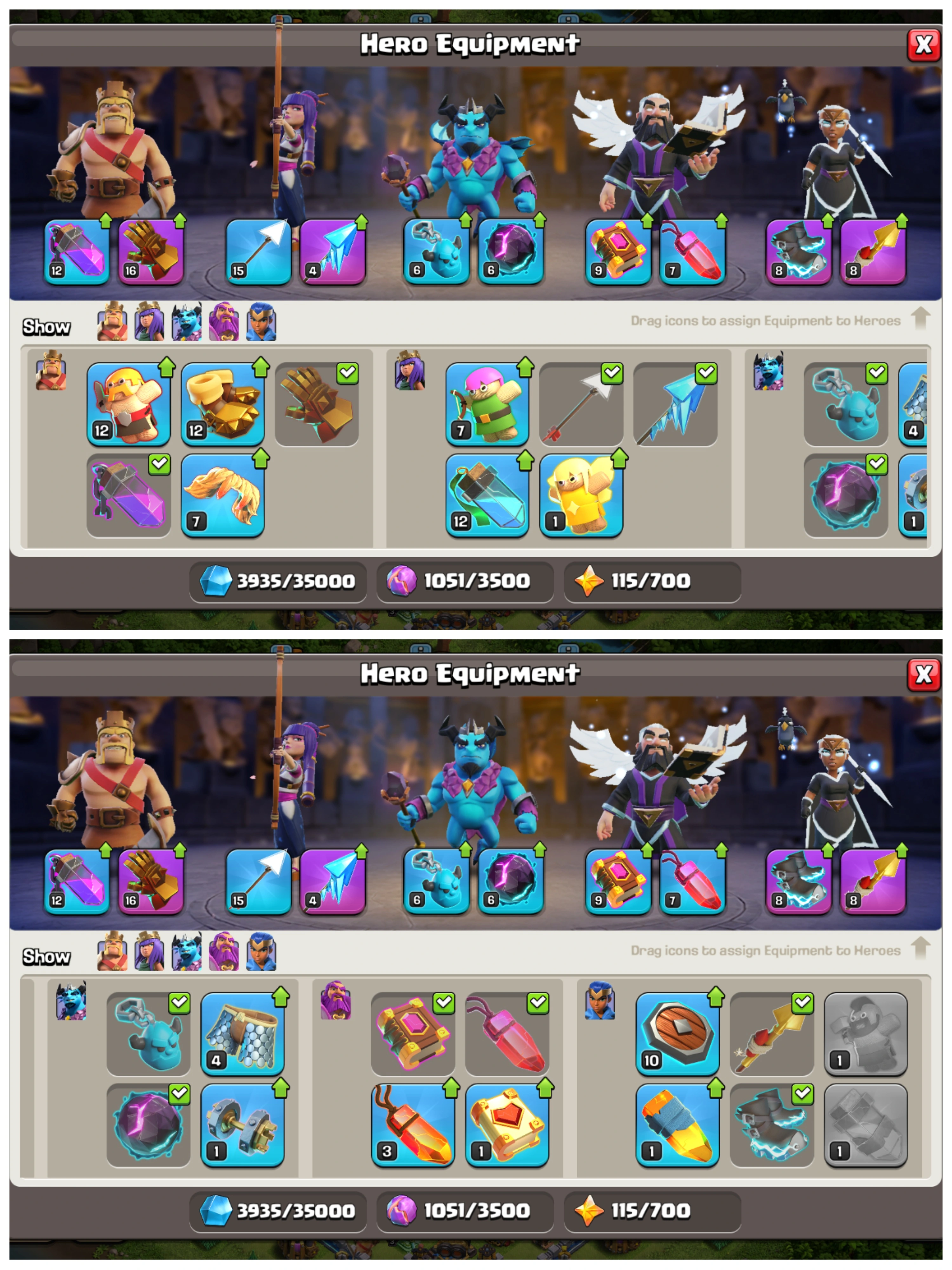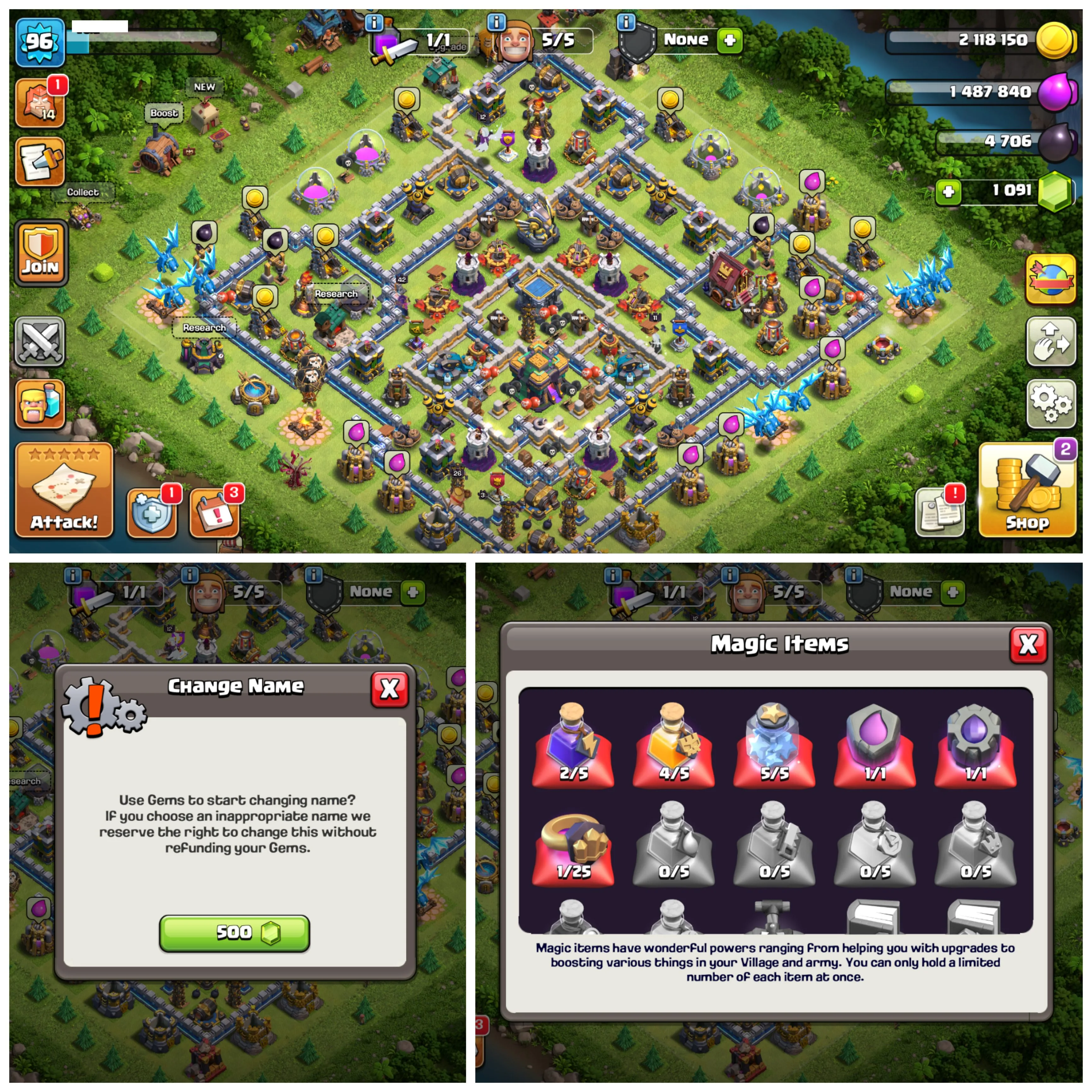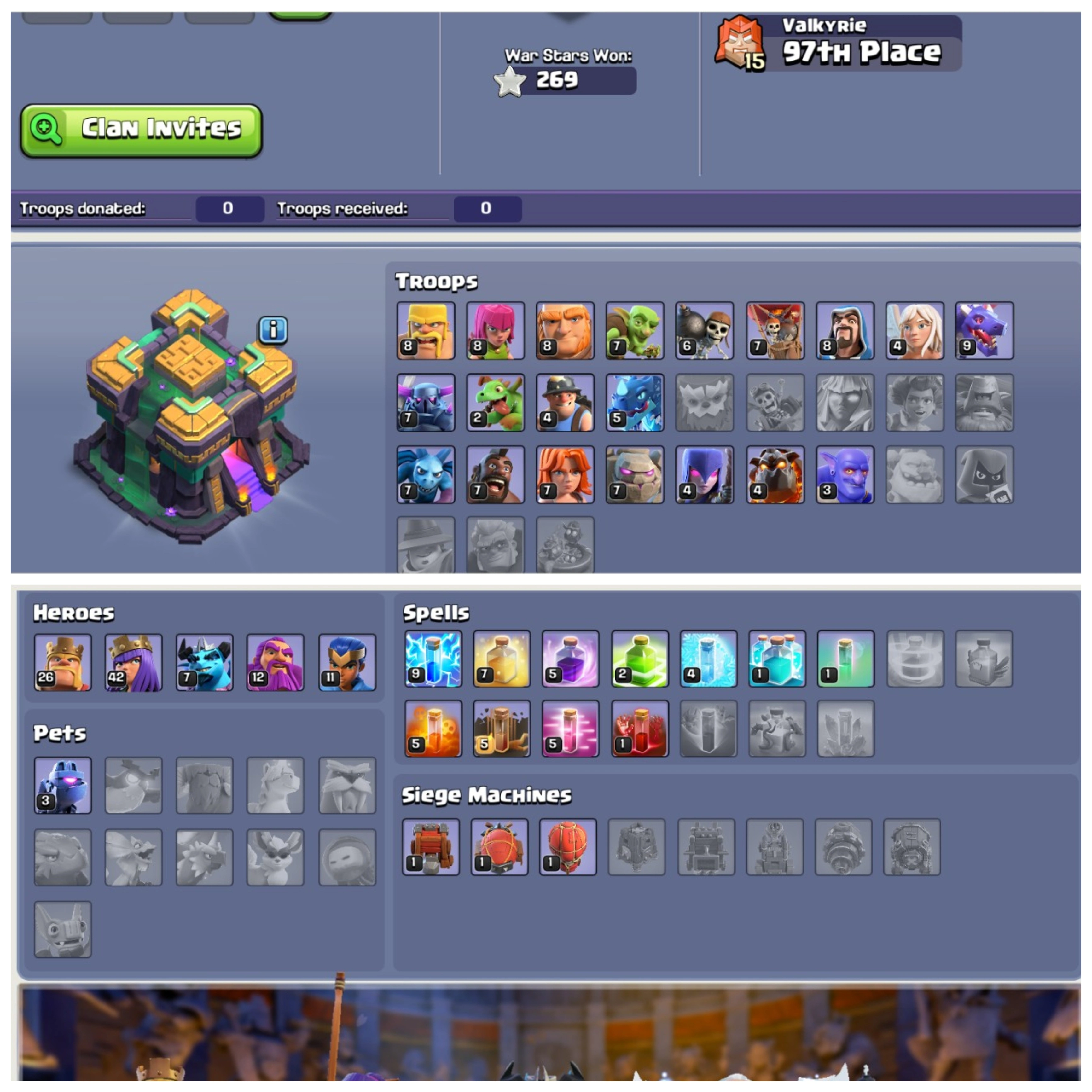 🔥 TH 14 Semi Max ⚔️ 4 Epic Equipments • 2 Magic Skins 🌟 Heroes BK26 • AQ42 • MP7 • GW12 • RC11 ✨ Name Changeable • Blue & White Walls 🚀 Instant Delivery