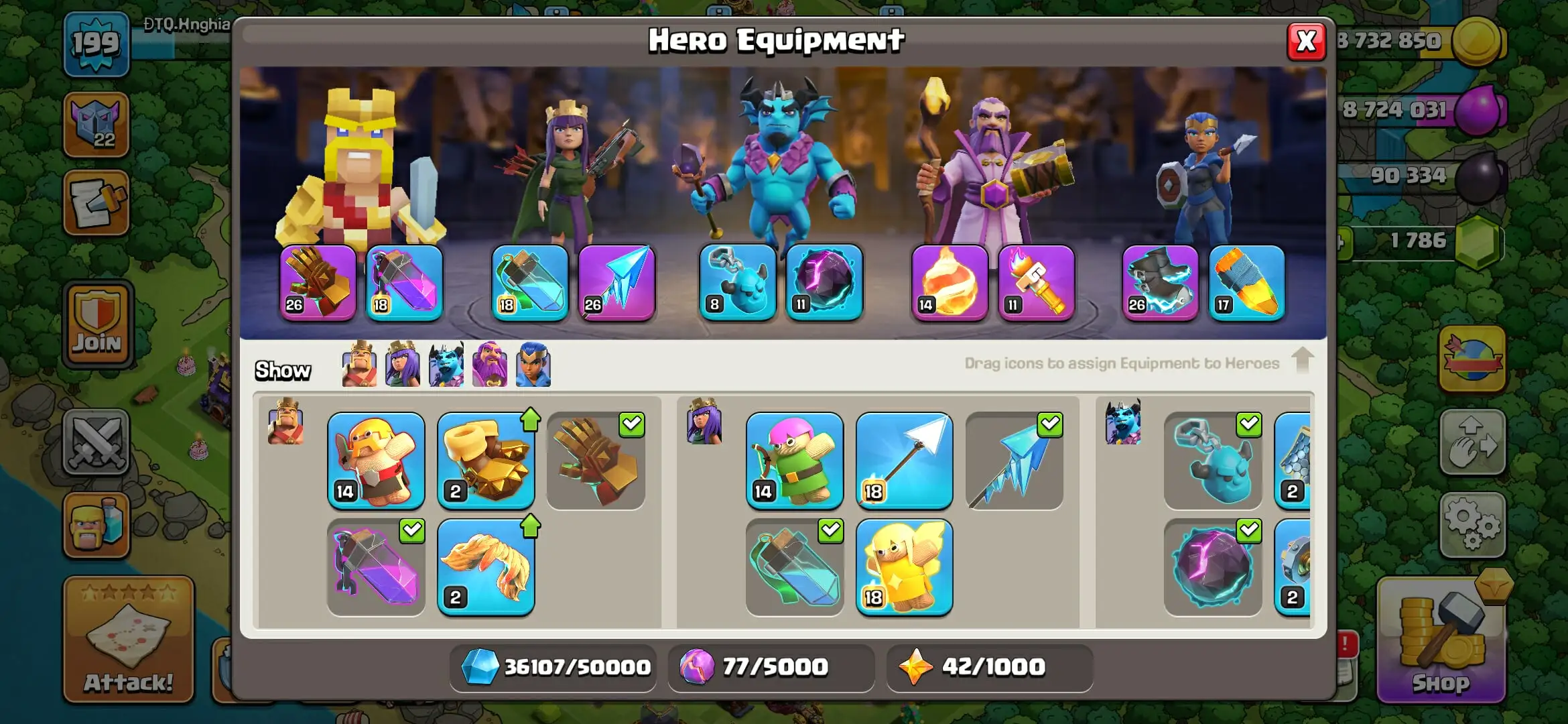 TH 16 Best 🌟Heroes ⸱ 80/90/50/67/36🔰 3 Epic Max type💥 GG-26/Fa-26/Eb- 26💥 Almost max defence 💥 1.5k Nc 🏆 Instant Delivery ( 95)