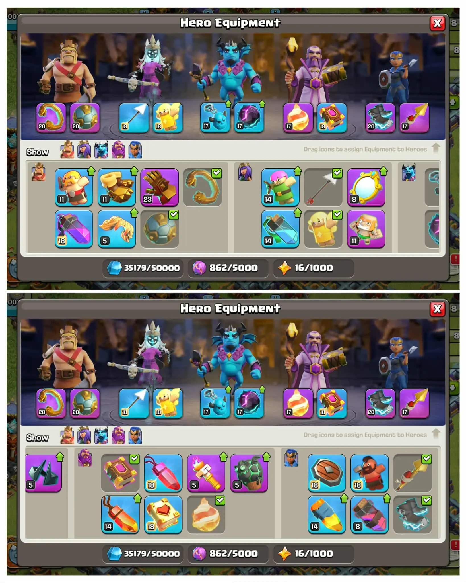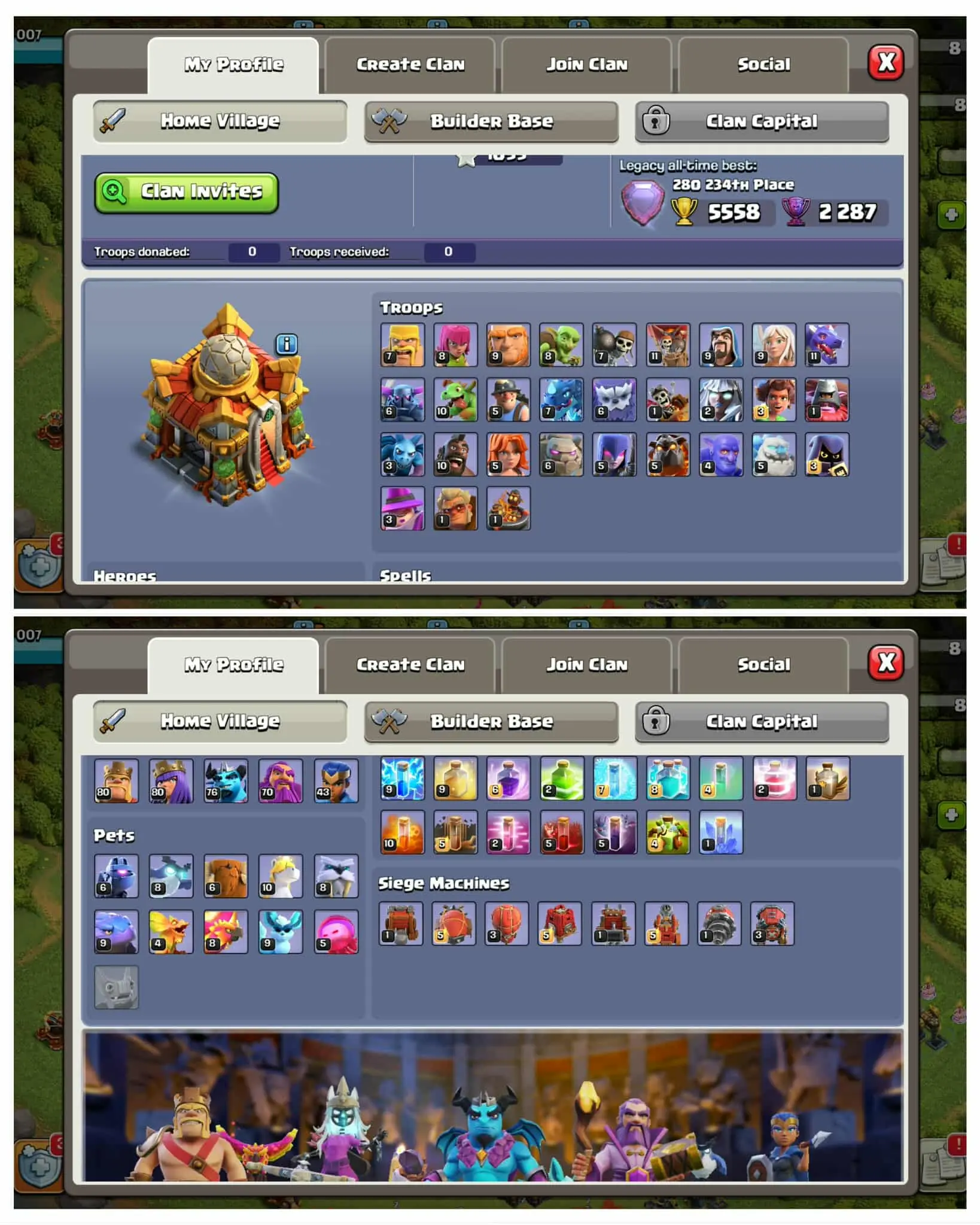 TH 16 NEAR MAX | HEROES 80-80-76-70-43| 10 EPIC EQUIP GG-23 SB-20 EB-20 RS-17 FB-17 | MAX DEFENSE BUILDER BASE| NC ON