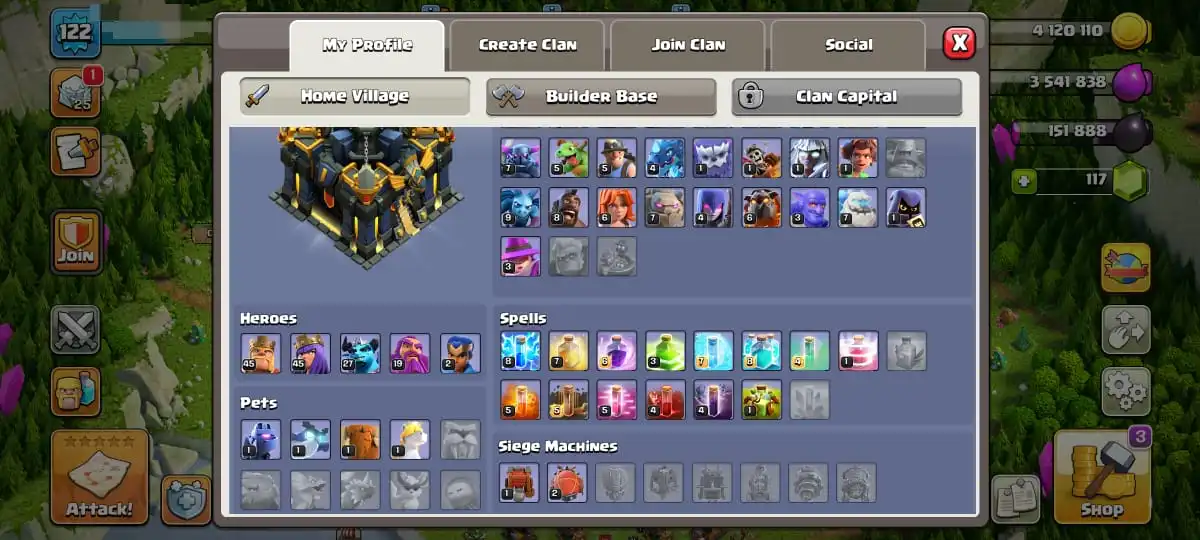 TH 17 SEMI MAX🔥HEROES 45-45-27-19-2 SPIKY BALL & FROZEN ARROW & FIRE BALL & ROCKET SPEAR ON🔥MAGIC & JUNGLE & CLASHRAMA SCENERY🔥MAGIC ITEMS READY🔥FULL ACCESS ACCOUNT🔥