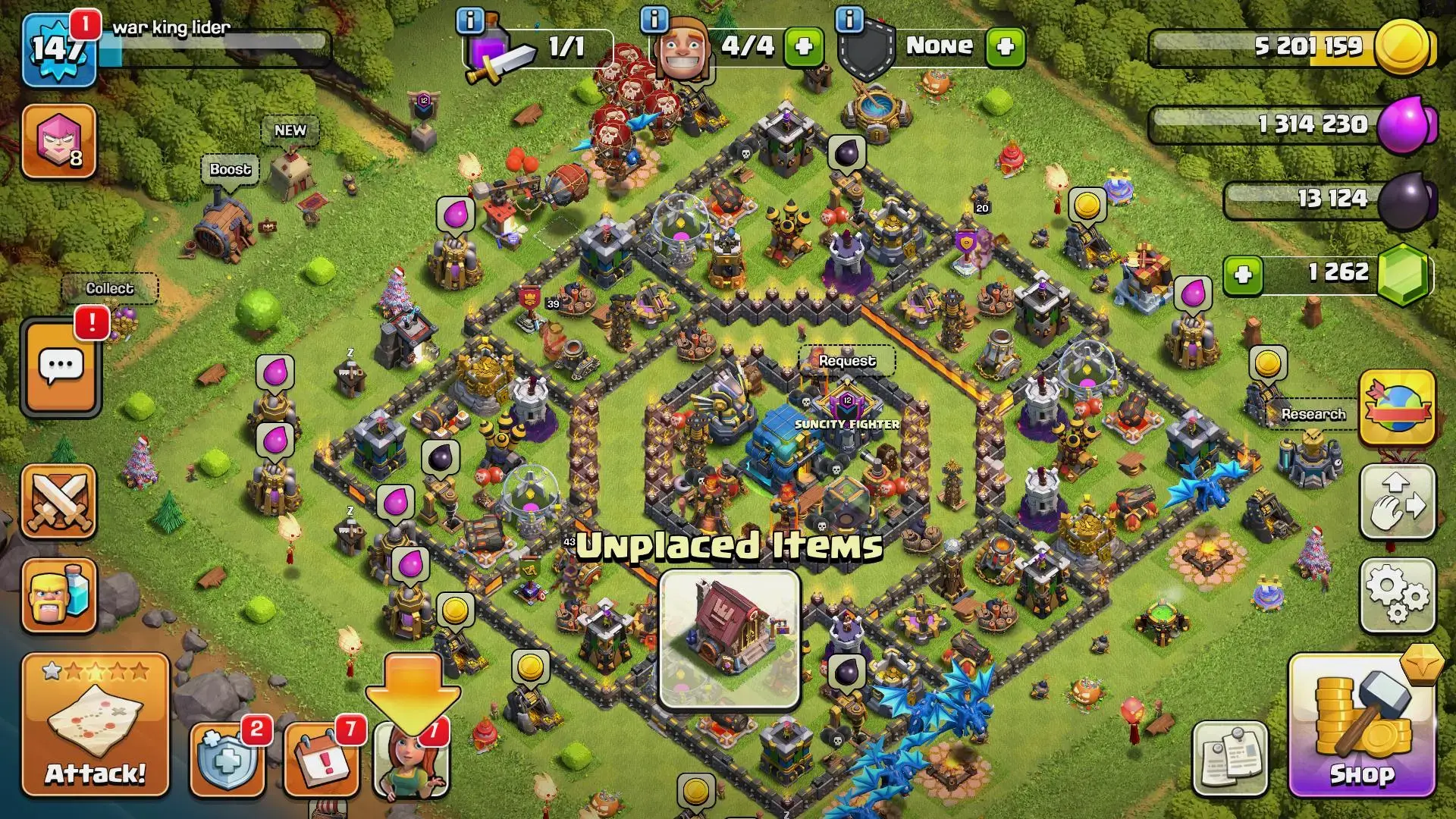 TH12 | 147 LVL | 2605 Trophy | 1262 GEMS | 39BK | 43AQ | 20GW| 0RC | FULL ACCESS | IOS/ANDROID (SCREENSHOTS INSIDE)