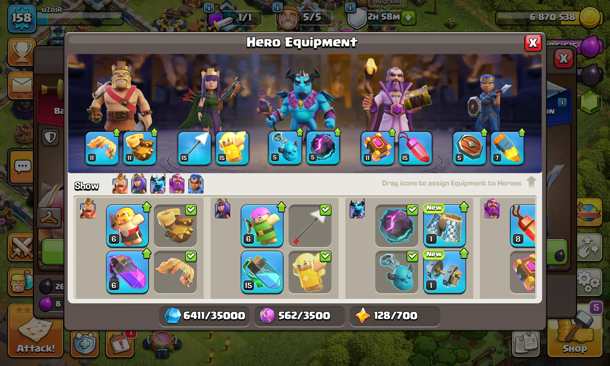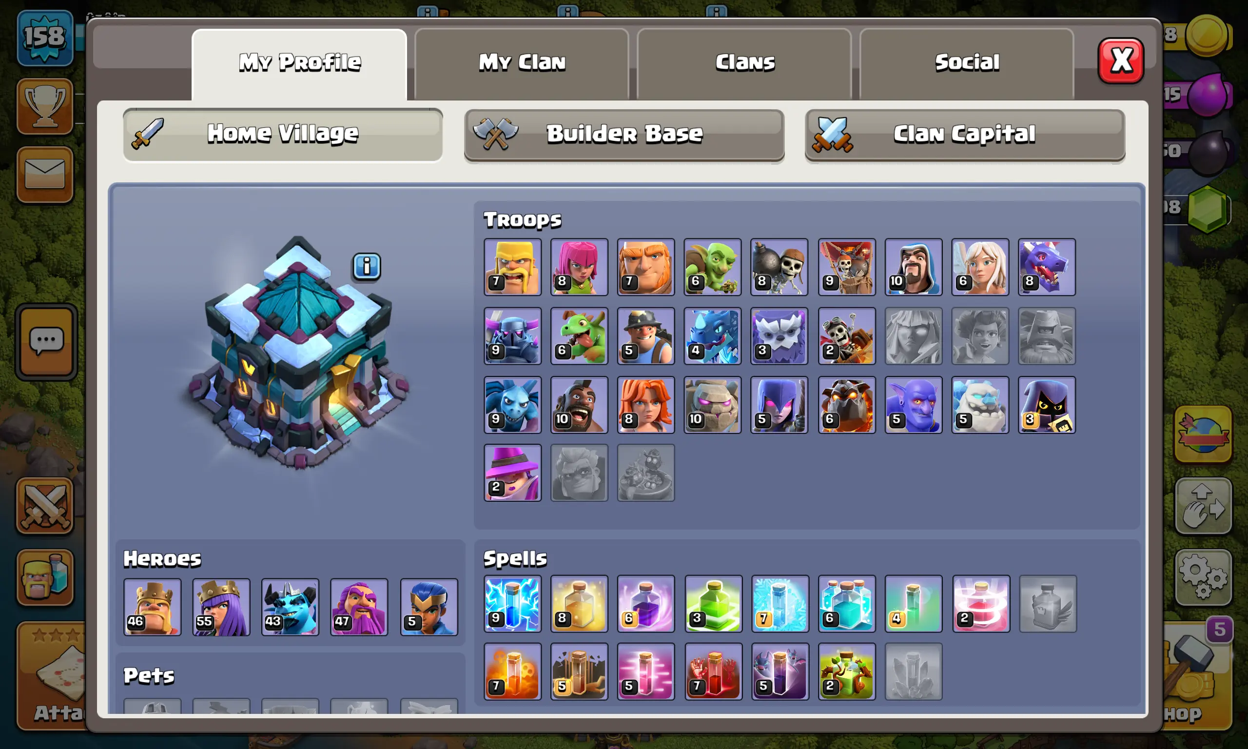 【 TH13 】🌐158 Level ⚔️BK 46 🏹AQ 55 🧙♂️GW 47 🕹️MP 43 🏆 2575 Trophies 👷Builders 5 💎2500 Gems | Instant Delivery