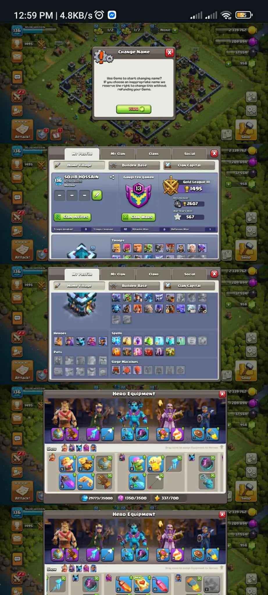 TH13 MAX ID | HERO'S: 59-61-40-35-10 | MAX WALL | SPIKEY BALL, GIANT GONGLET, FROZEN ARROW | XP-136 | ALL EQUIPMENT HIGH | LOTS OF MAGIC ITEMS
