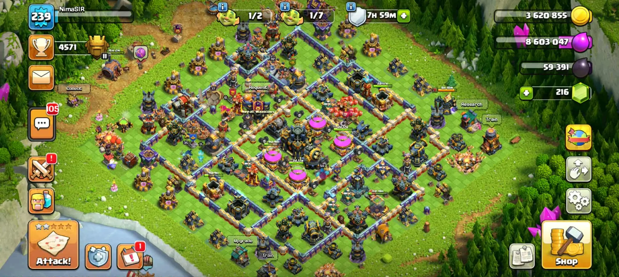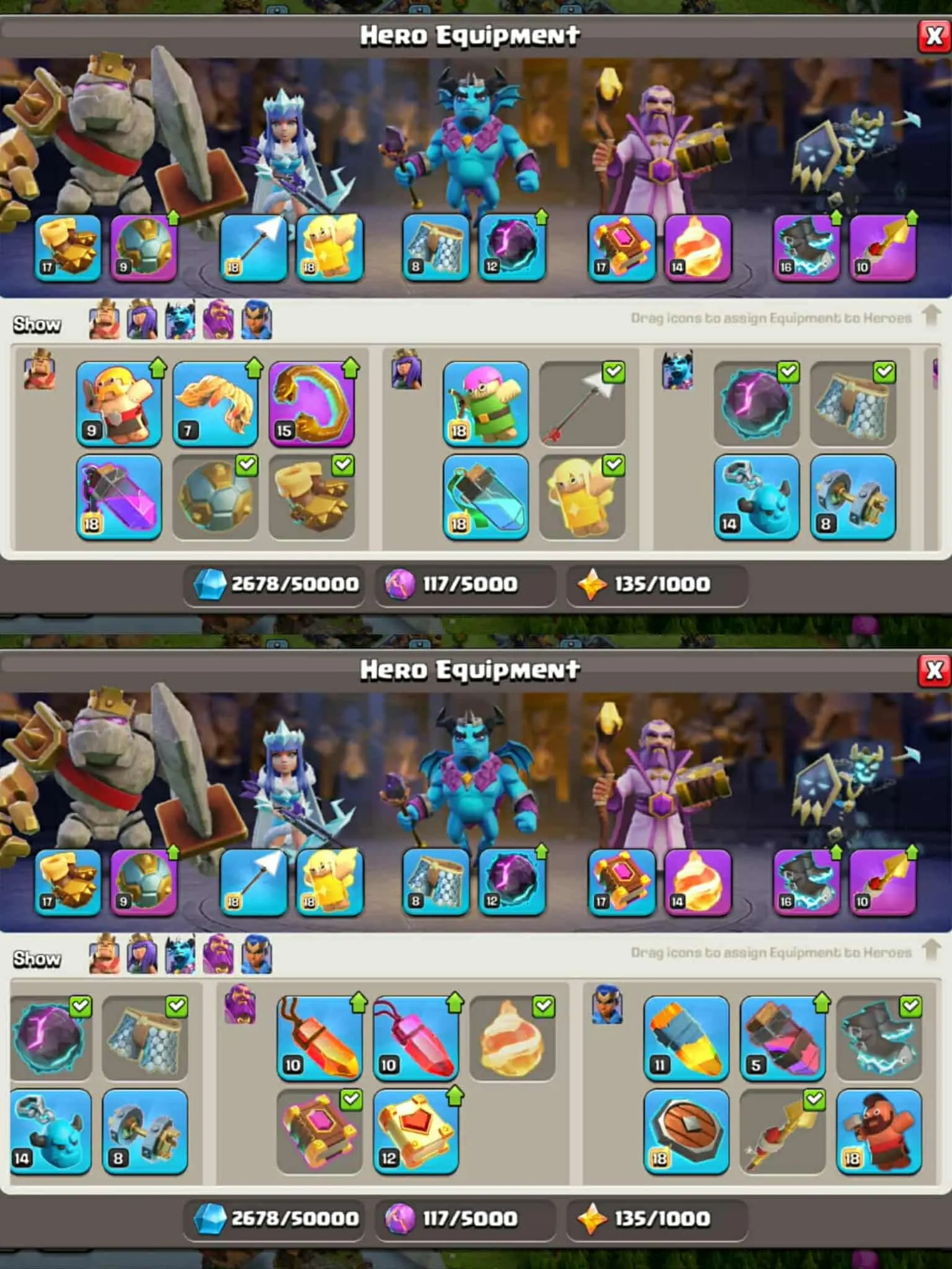 Th17 Maxed👑Heros:77-92-54-52-35💯4 Epic💯7 Equipment Maxed♦️Insta Deli