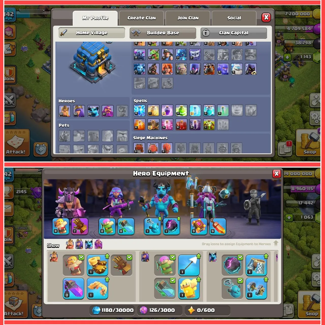[VN] 👑TH -12 NEAR MAX 💥 142 XP 💥 MAGIC ITEMS 🔥 MAXED DEFENSE 🔥 HERO'S 59-58-39-37 🌟HERO SKINS 🌟EPIC EQUIP 🧩RENAME 🎗QUICK DELIVERY