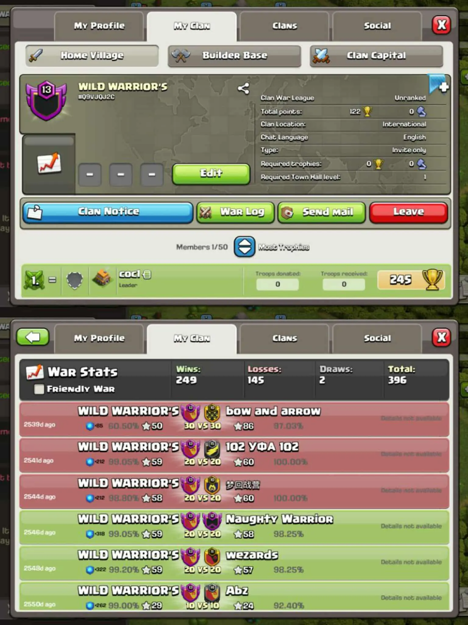 Clan Level 13 | Name: WILD WARRIOR.S | Most Rare Name | UNRANKED CLAN || Good War Log || WIN 249/ LOSS 145 14$