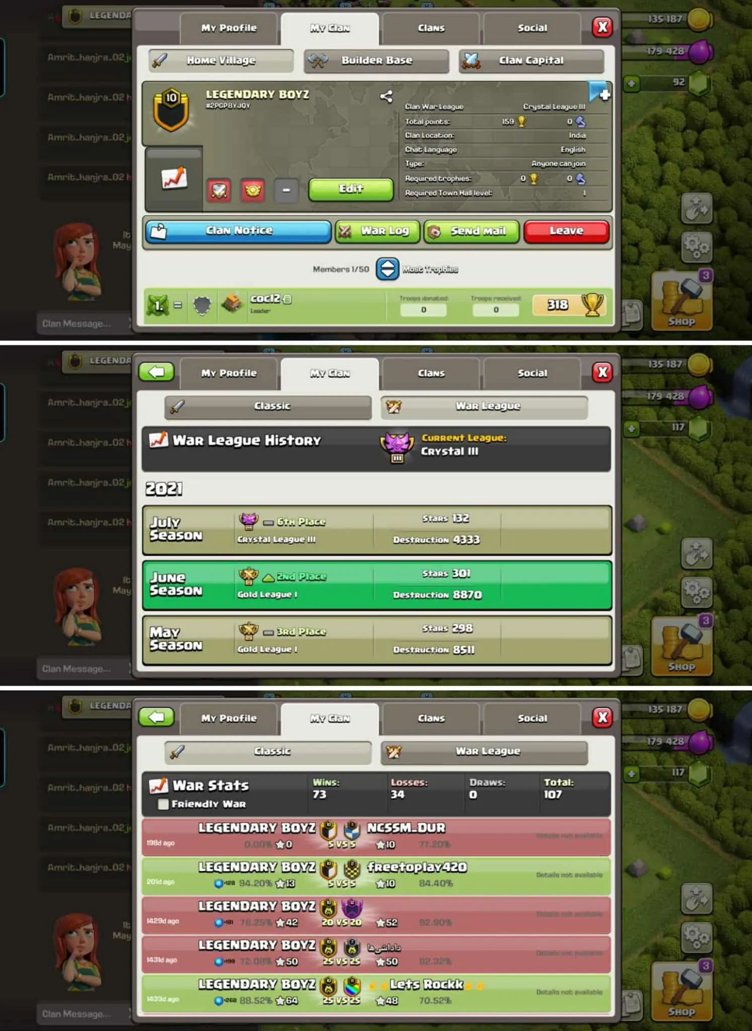 CLAN NAME - TEAM CRAZY♻️860 | CP 8 | GOLD 2 LEAGUE | WIN 68 | LOSE 64 | DRAW 4 | CHEAP RATE | FAST DELIVERY