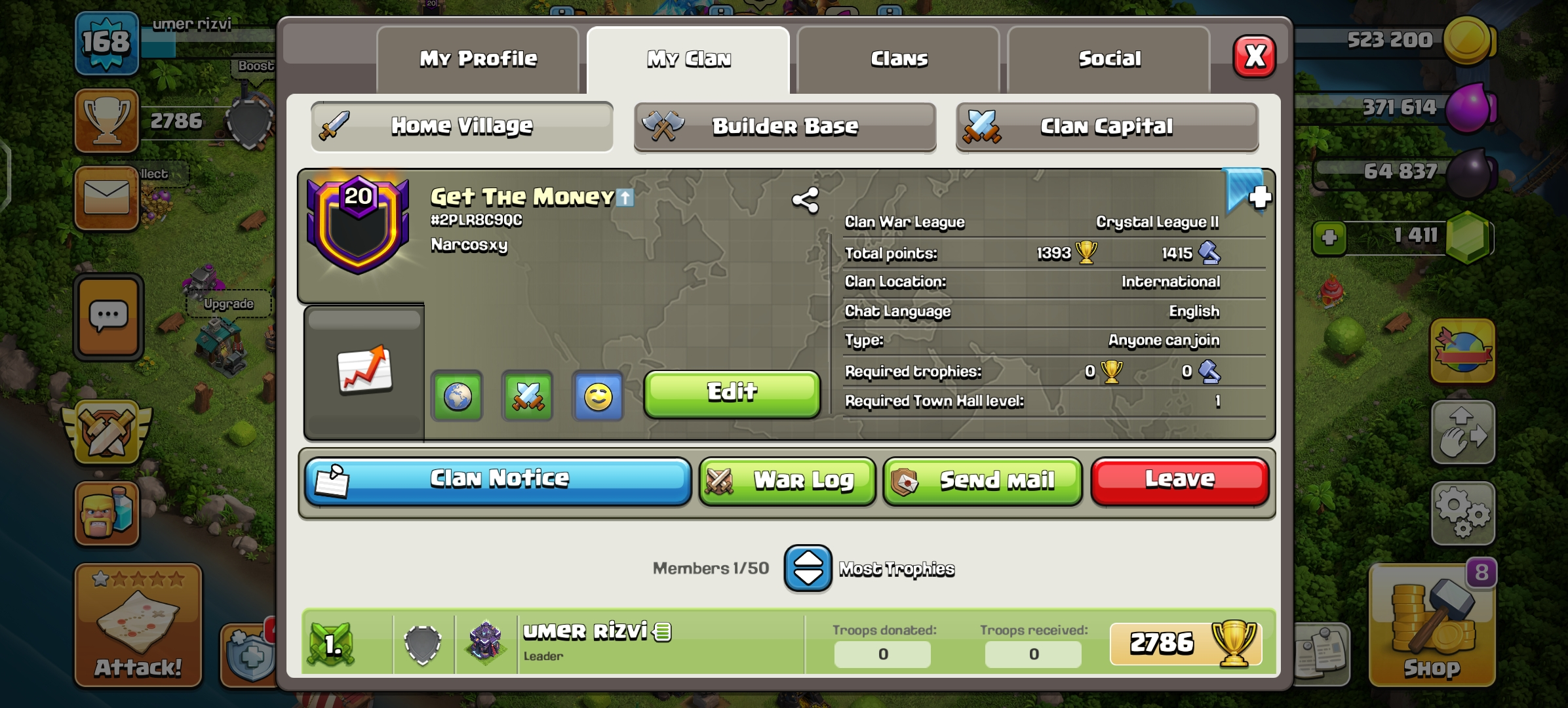 Level 16 clan || clan capital 9 || gold 2 || name - shagy Angel