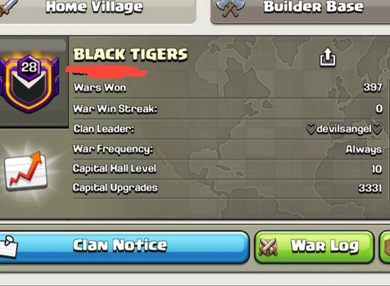 🔥NAME- BLACK TIGERS | LVL 28.5🥵| 💥WARLOG W/L/D:400/200/2| CWL League: MASTER 2🏆| CC: 10 FULL MAX !!💥